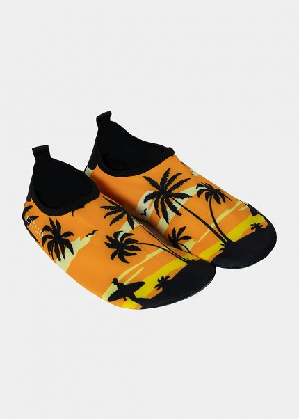 Women, tropical beach in orange