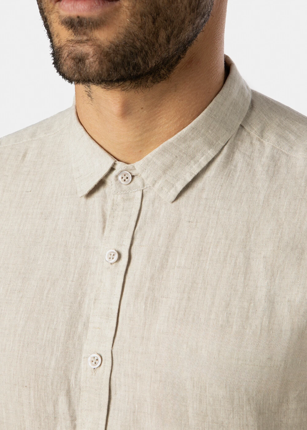 100% Linen Natural Beige Classic Shirt w/ Short Sleeves