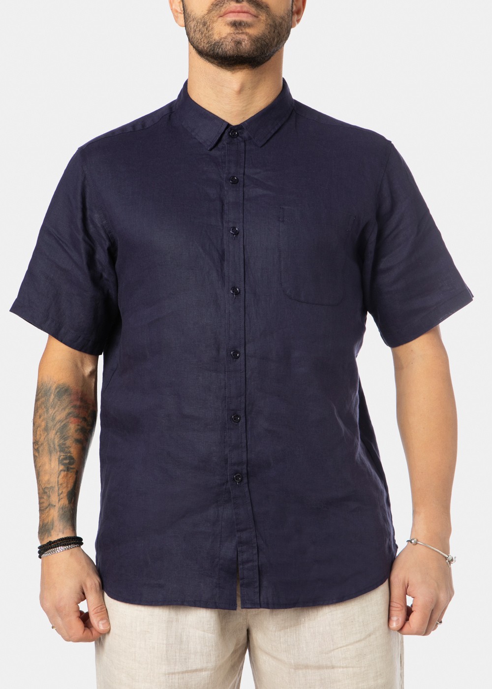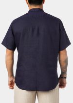 100% Linen Navy Blue Classic Shirt w/ Short Sleeves
