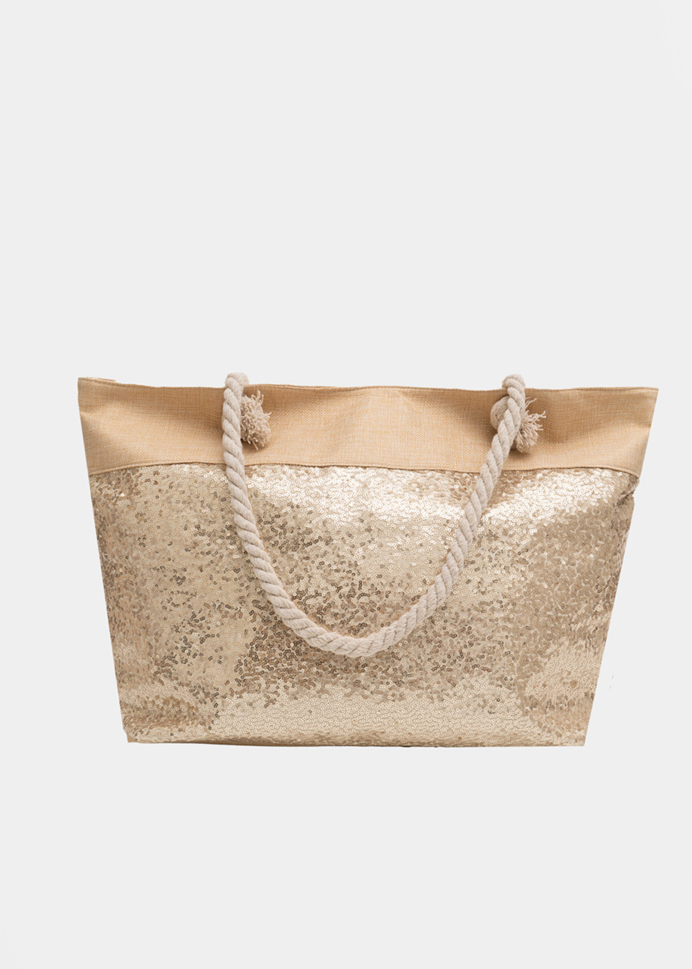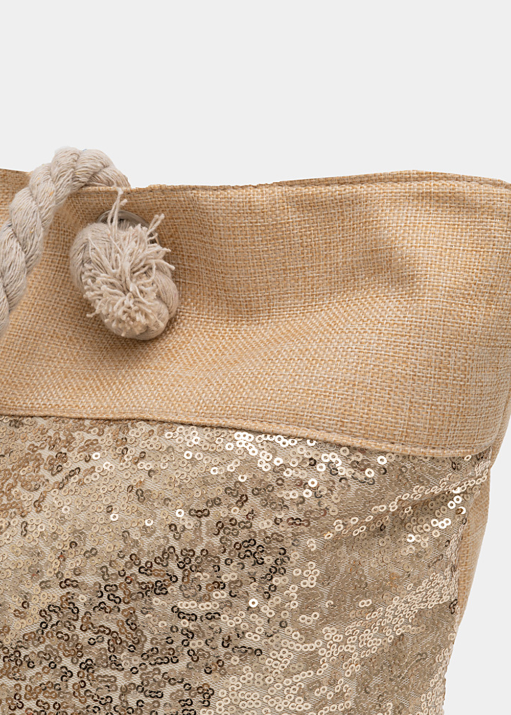 Beige beach bag with gold sequins
