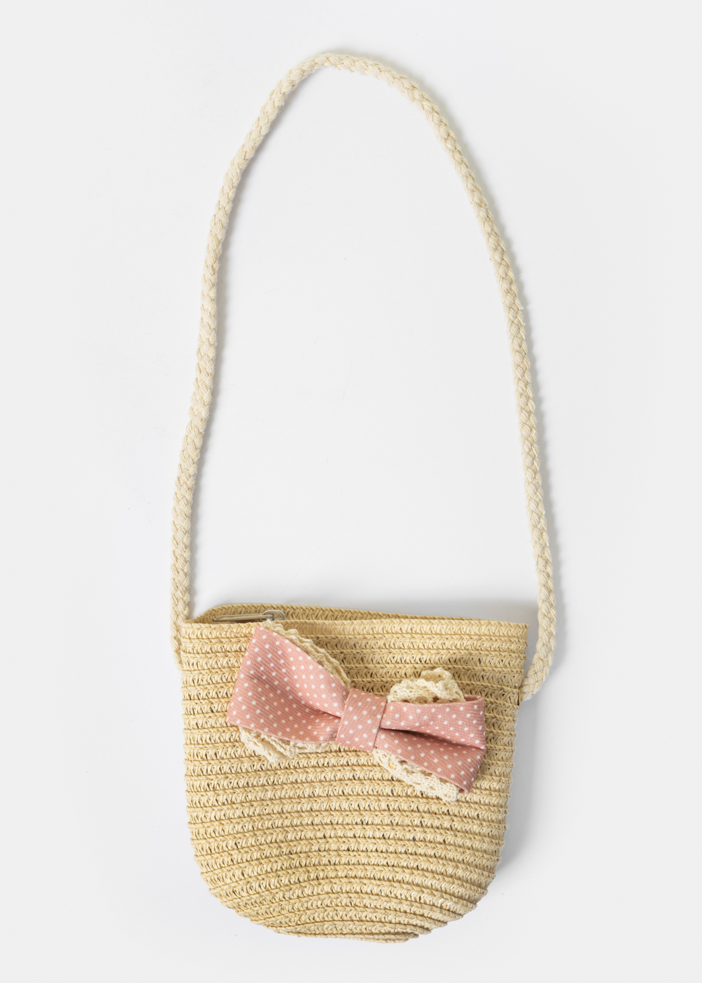 Beige Kids Bag w/ Pink Bow
