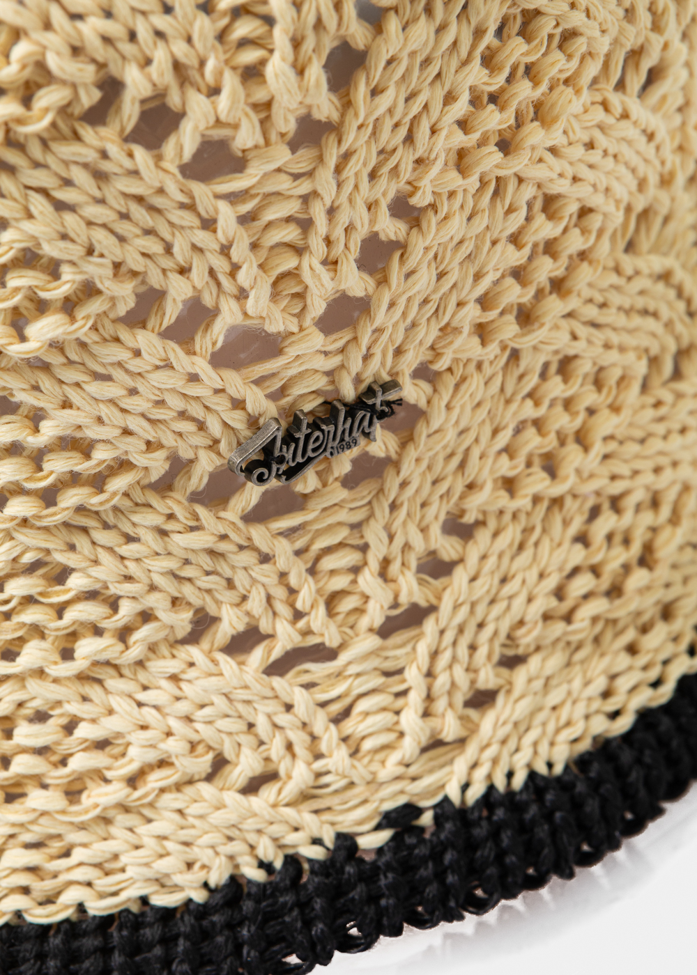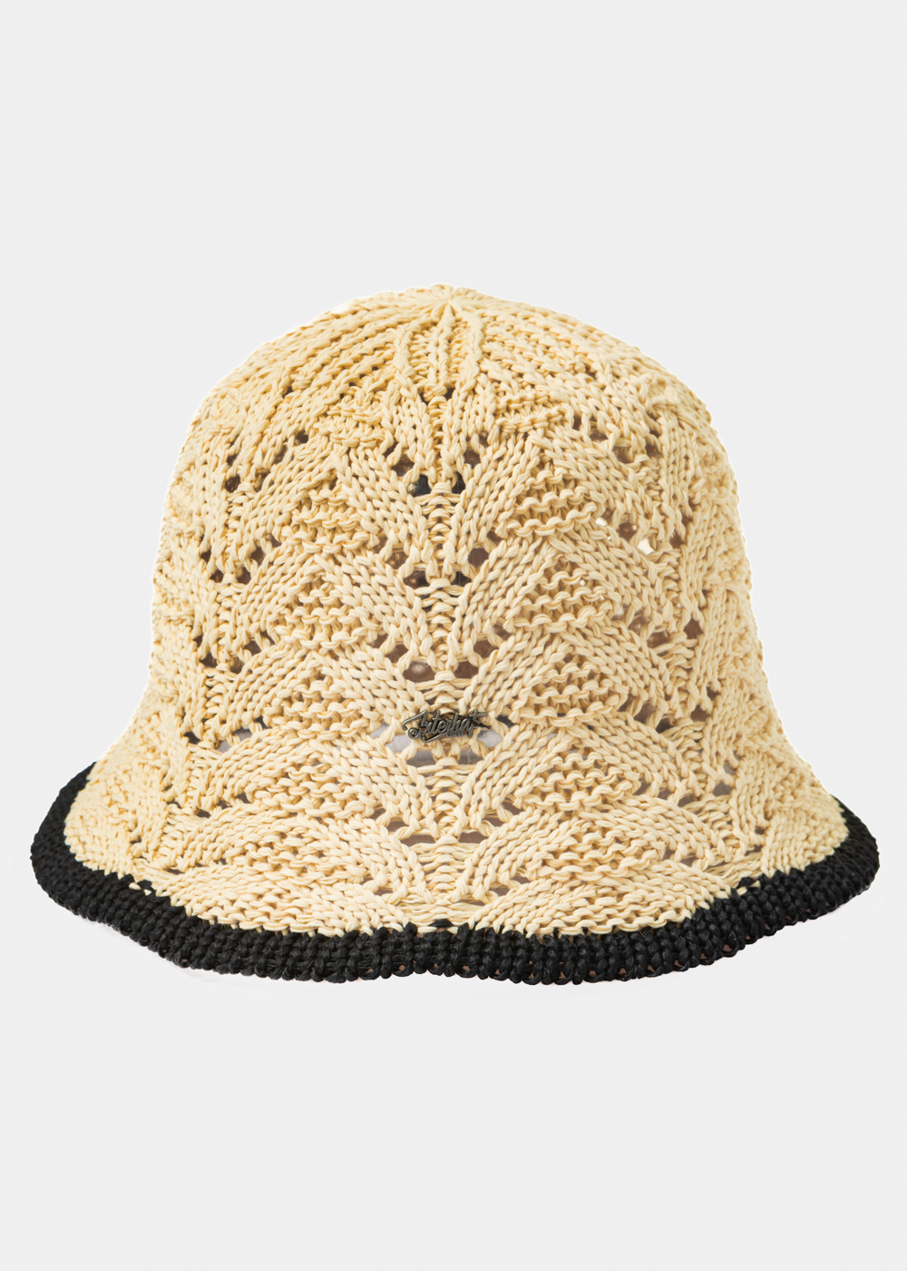 Beige Knitted Bucket Style Hat w/ Black Outline