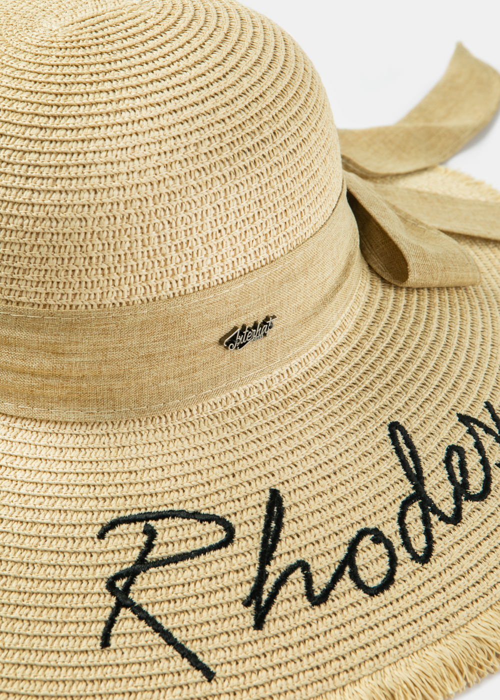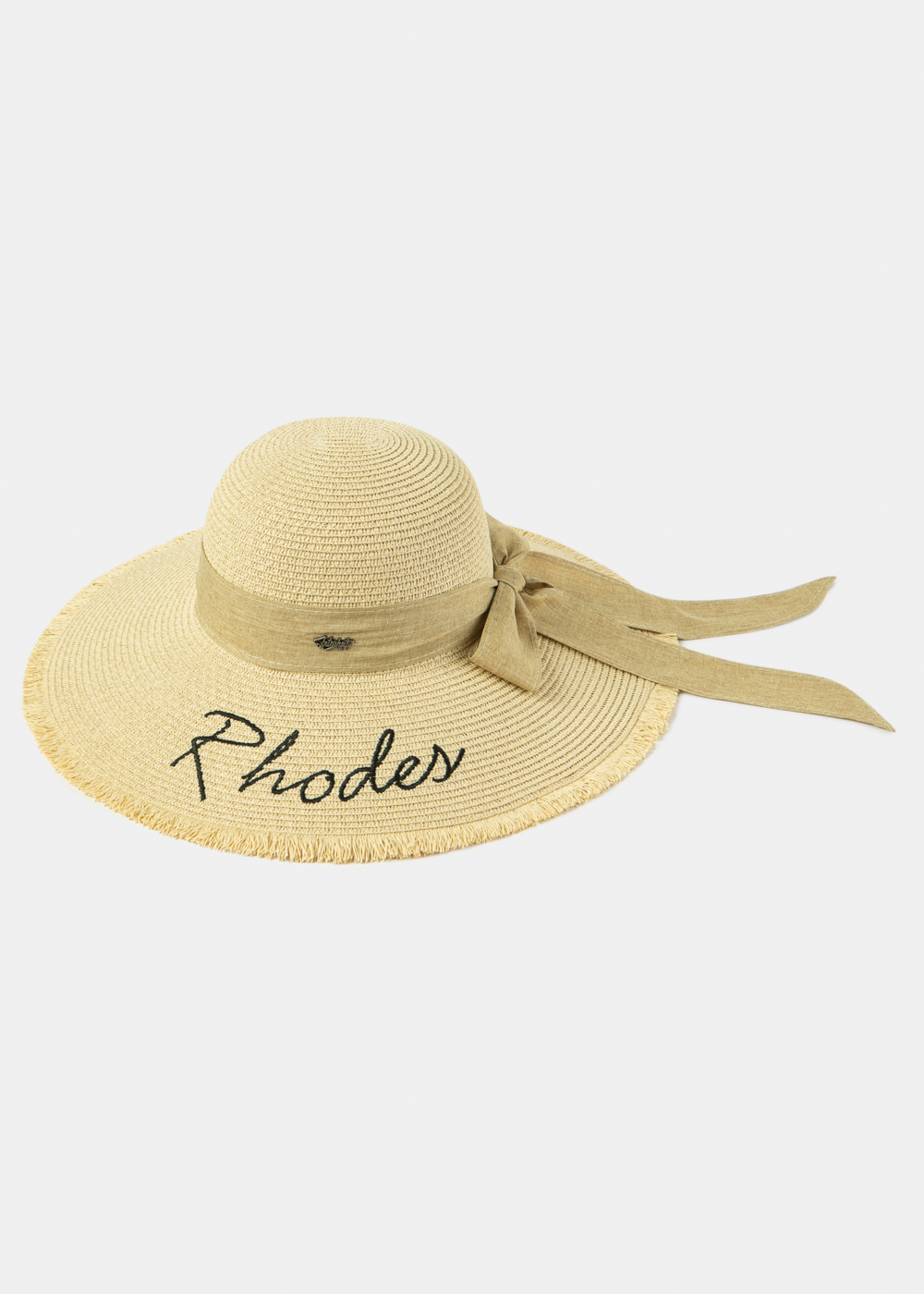 Beige “Rhodes” Straw Hat w/ Beige Ribbon