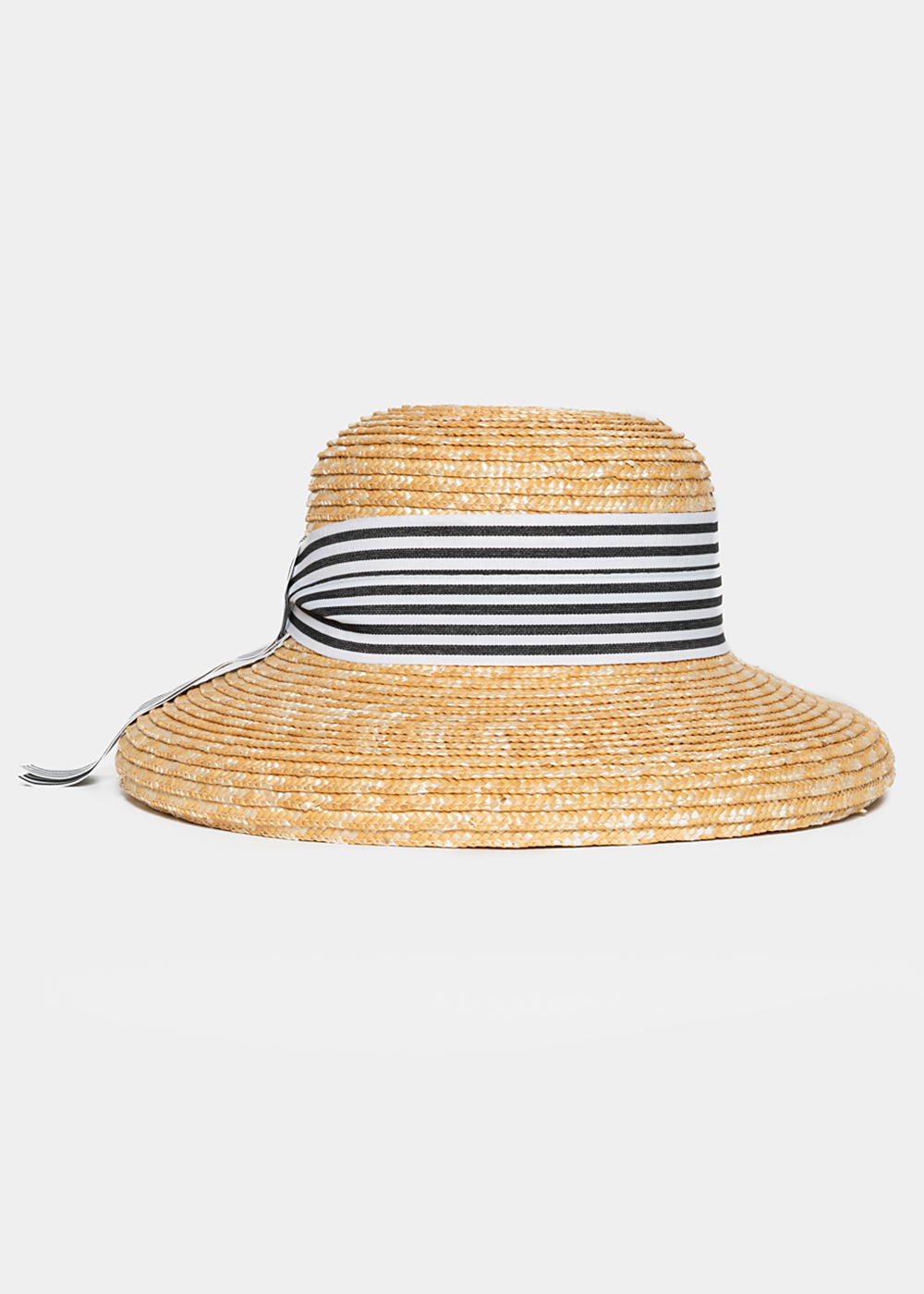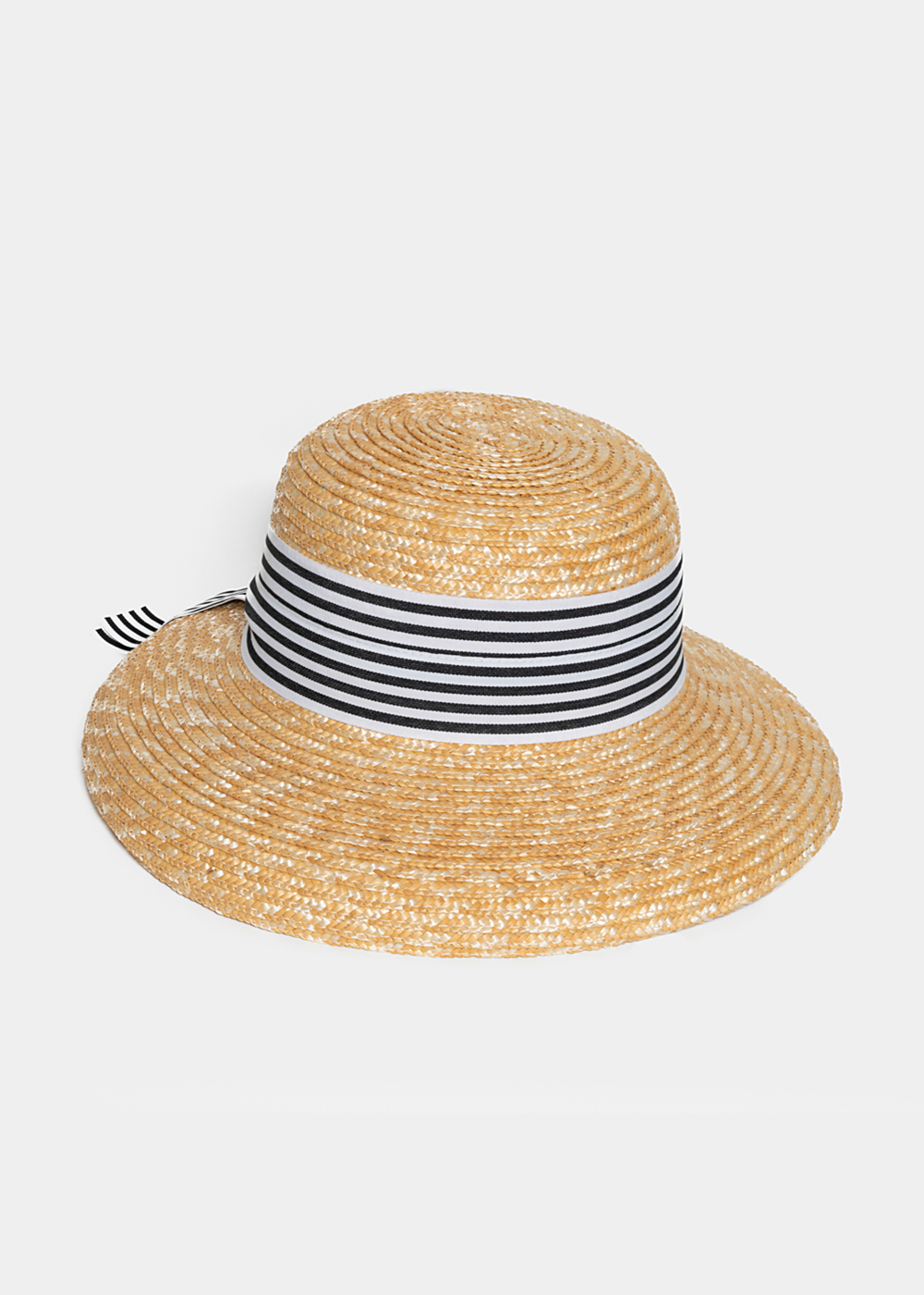Beige Straw Hat with Black & White Barred Strap