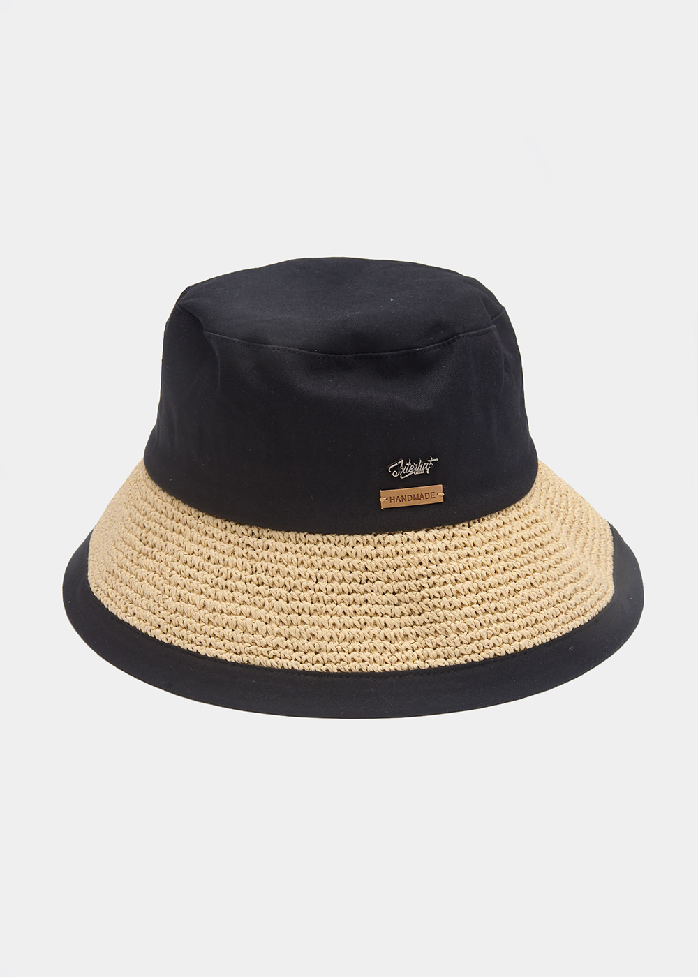 Black Bucket Cotton & Straw Hat