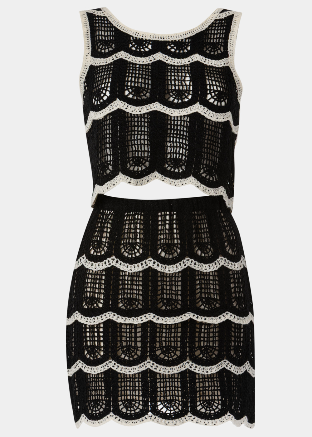 Μαύρο με μπεζ  τοπ και φούστα σετ