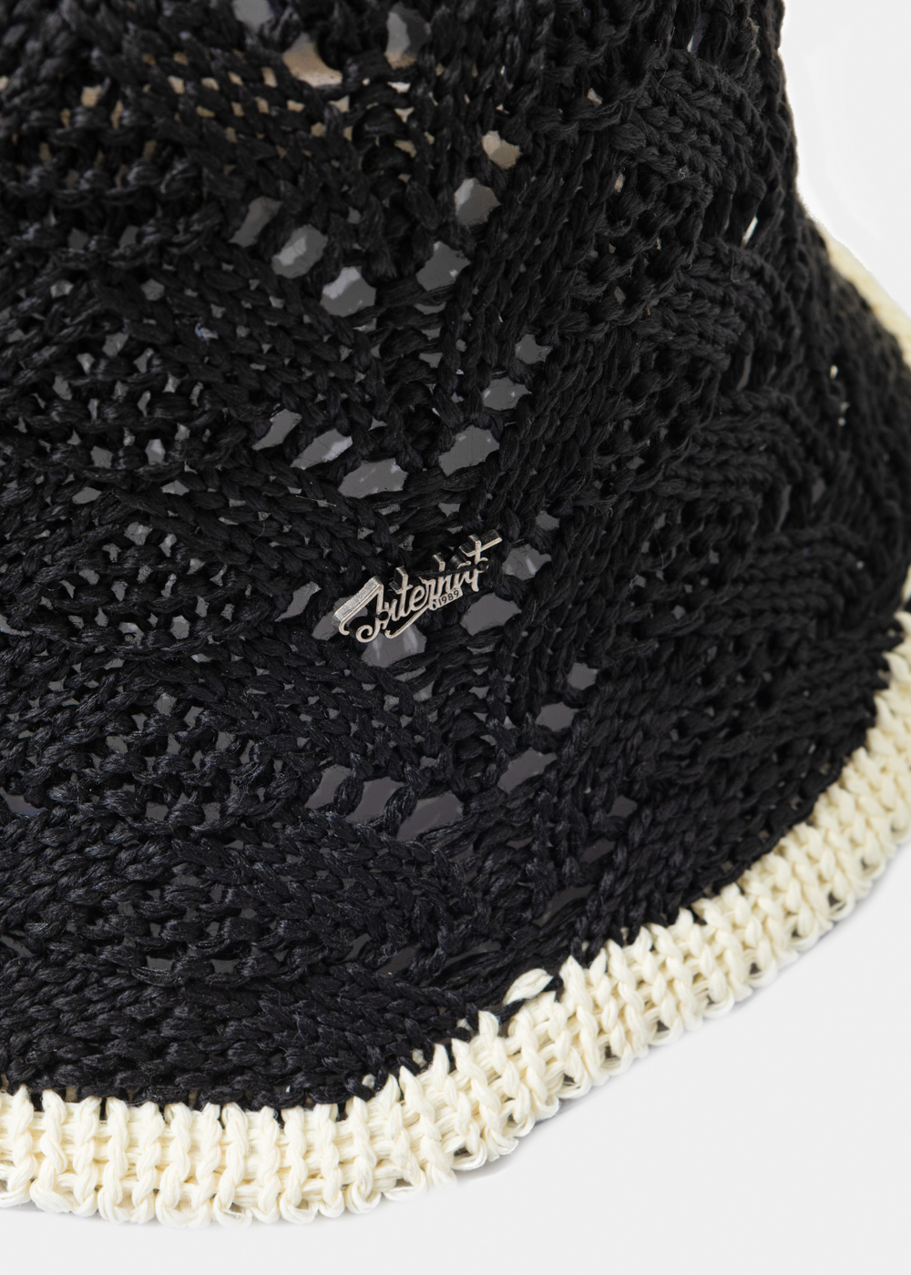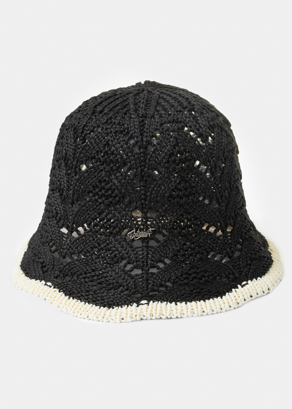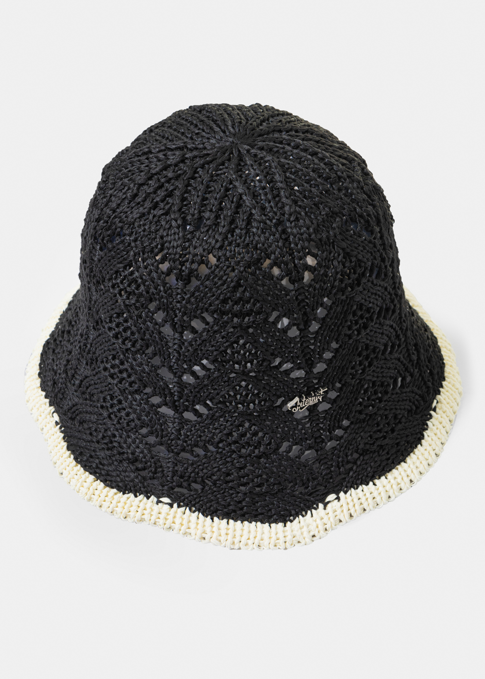 Black Knitted Bucket Style Hat w/ Ecru Outline