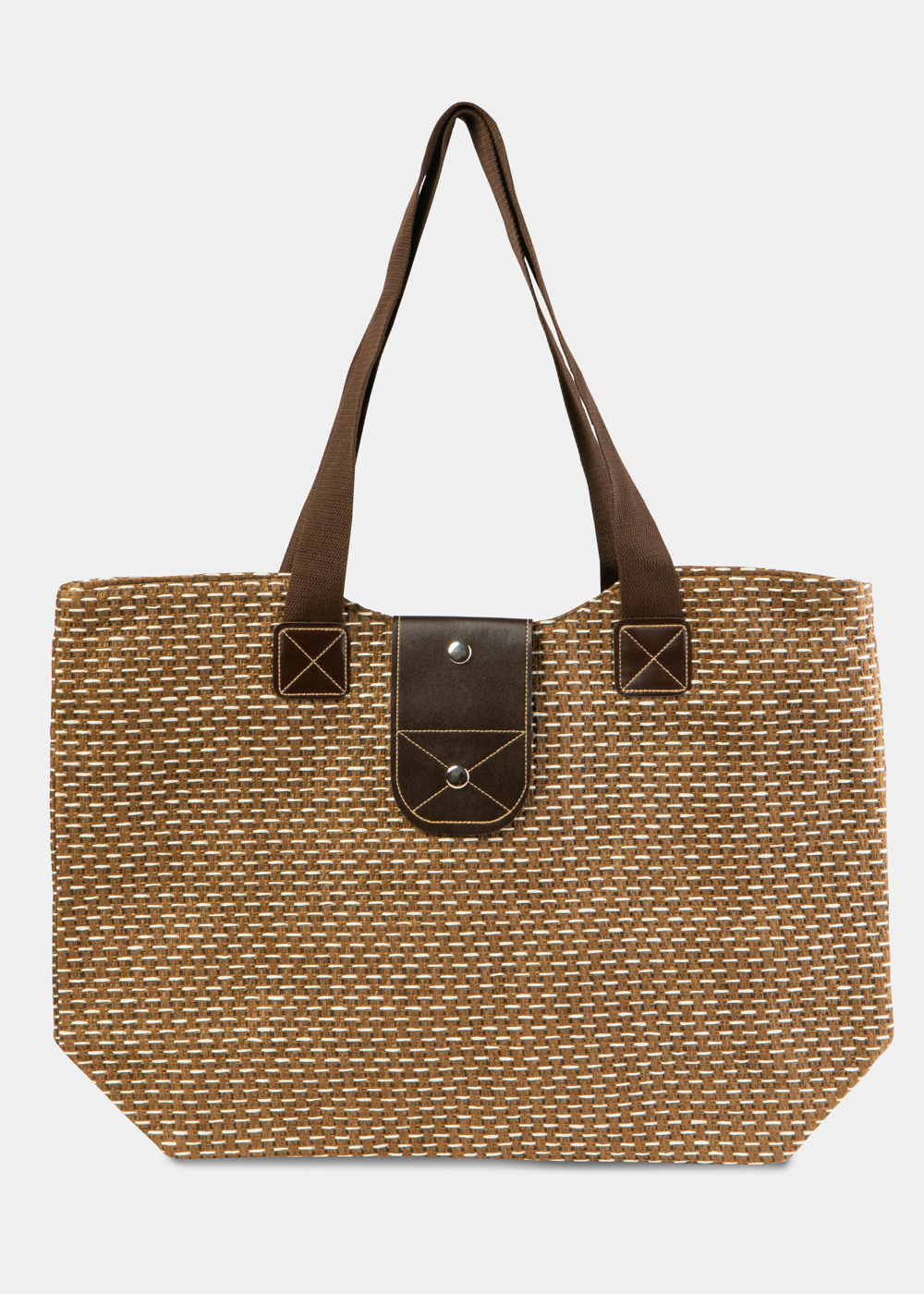 Brown Beach Bag w/ Leatherette Details