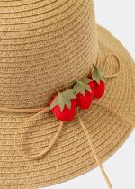 Brown Kids Straw Hat w/ Strawberries
