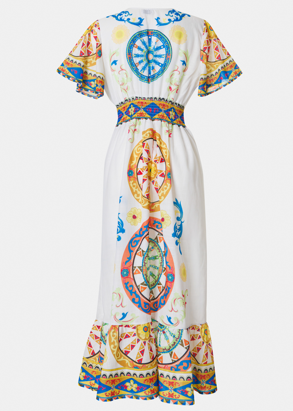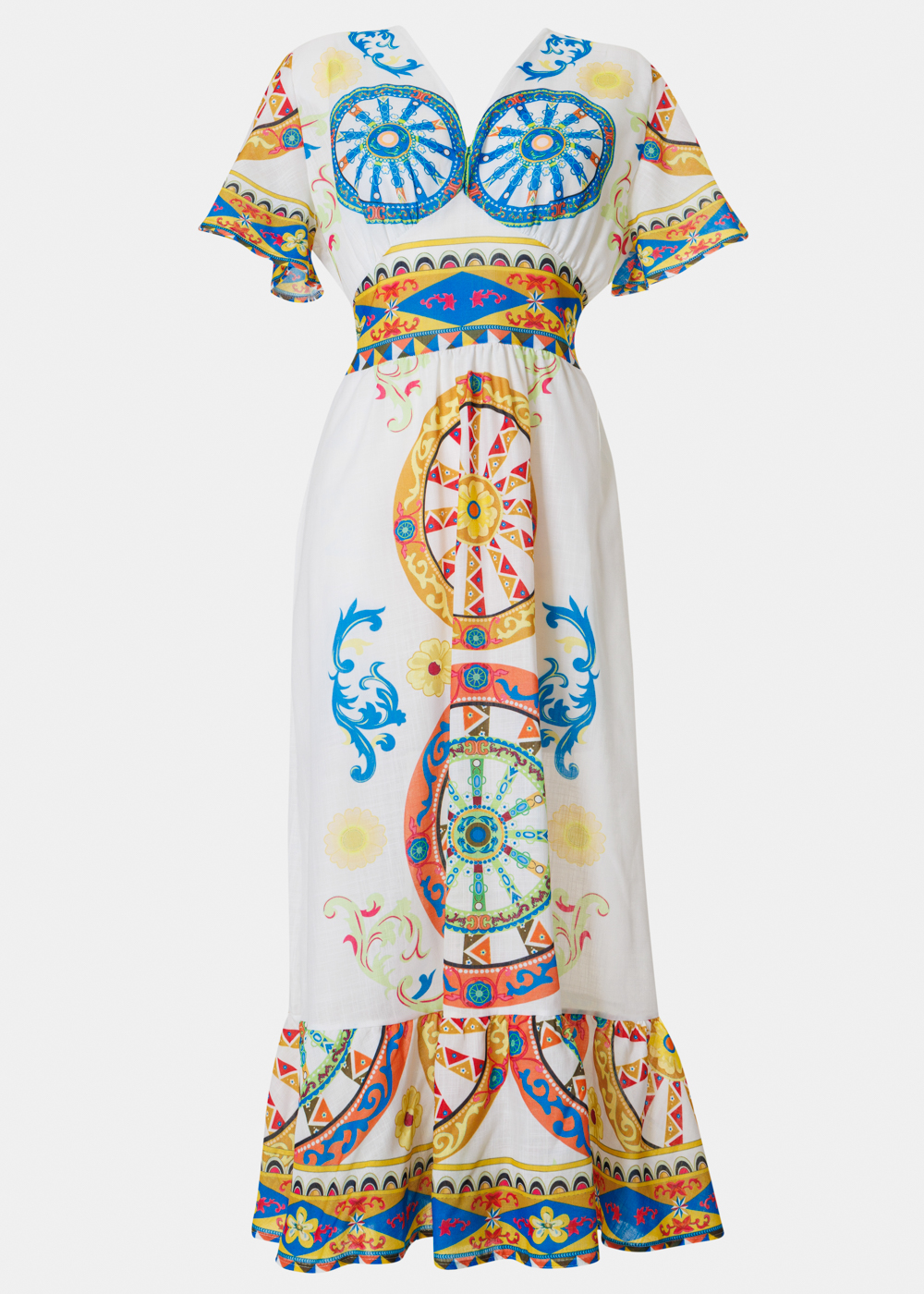 Colorful Maxi Dress w/ Blue Wheels Design