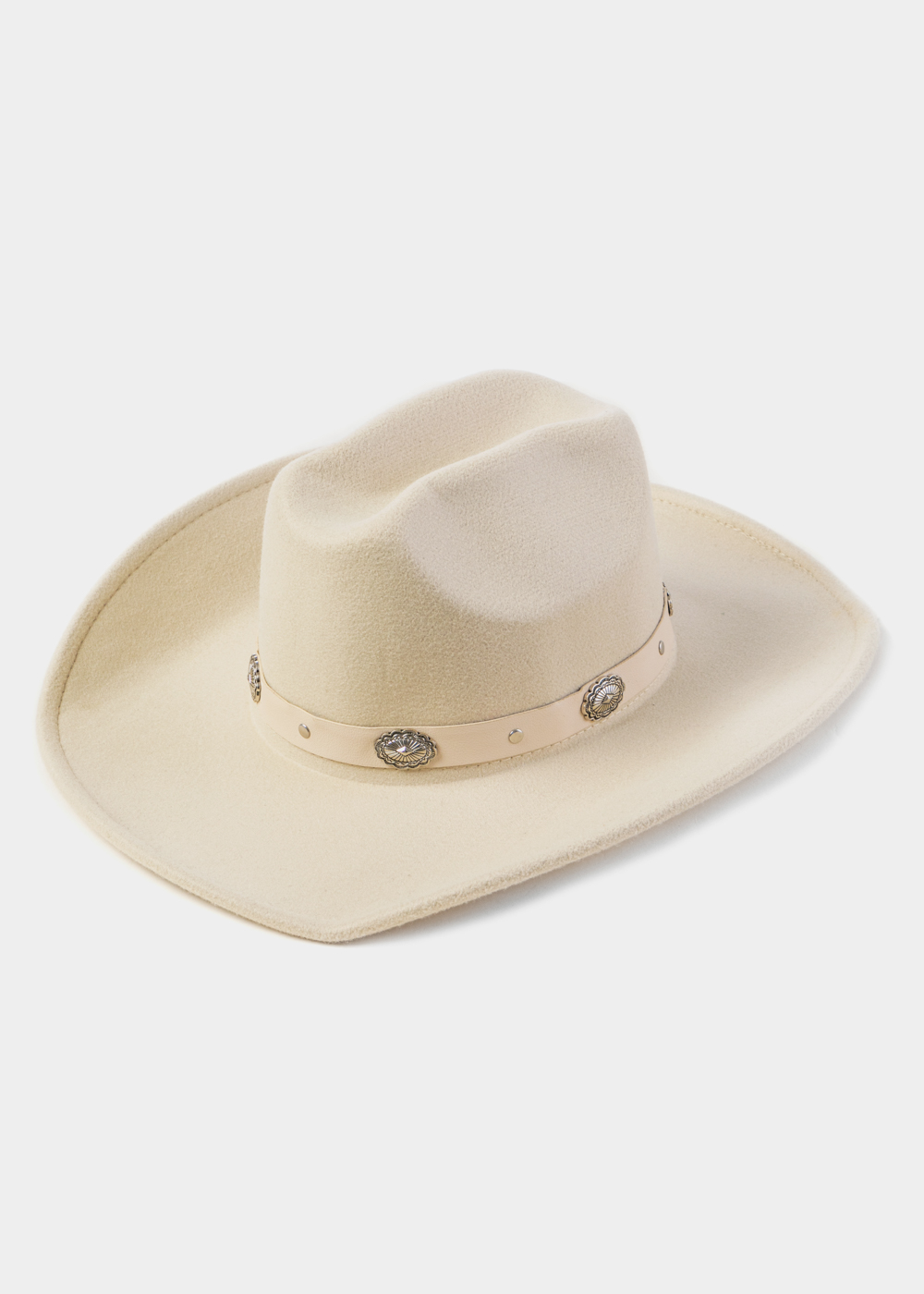 Cream Winter Hat w/ Leatherette Hatband