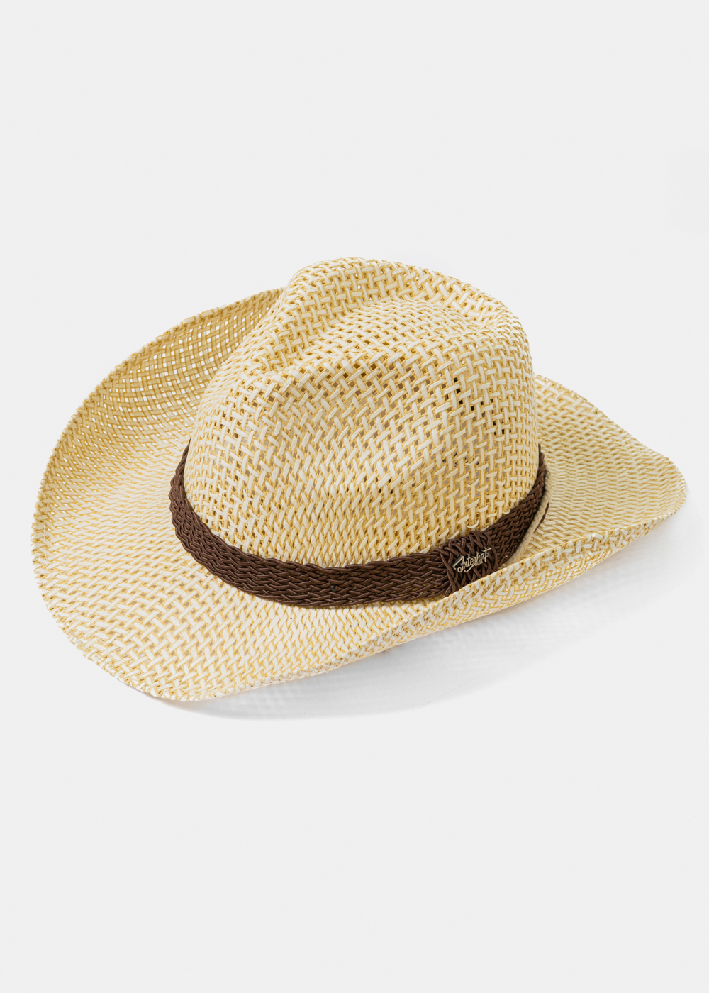 Ecru Cowboy Style Hat w/ Brown Braided Hatband