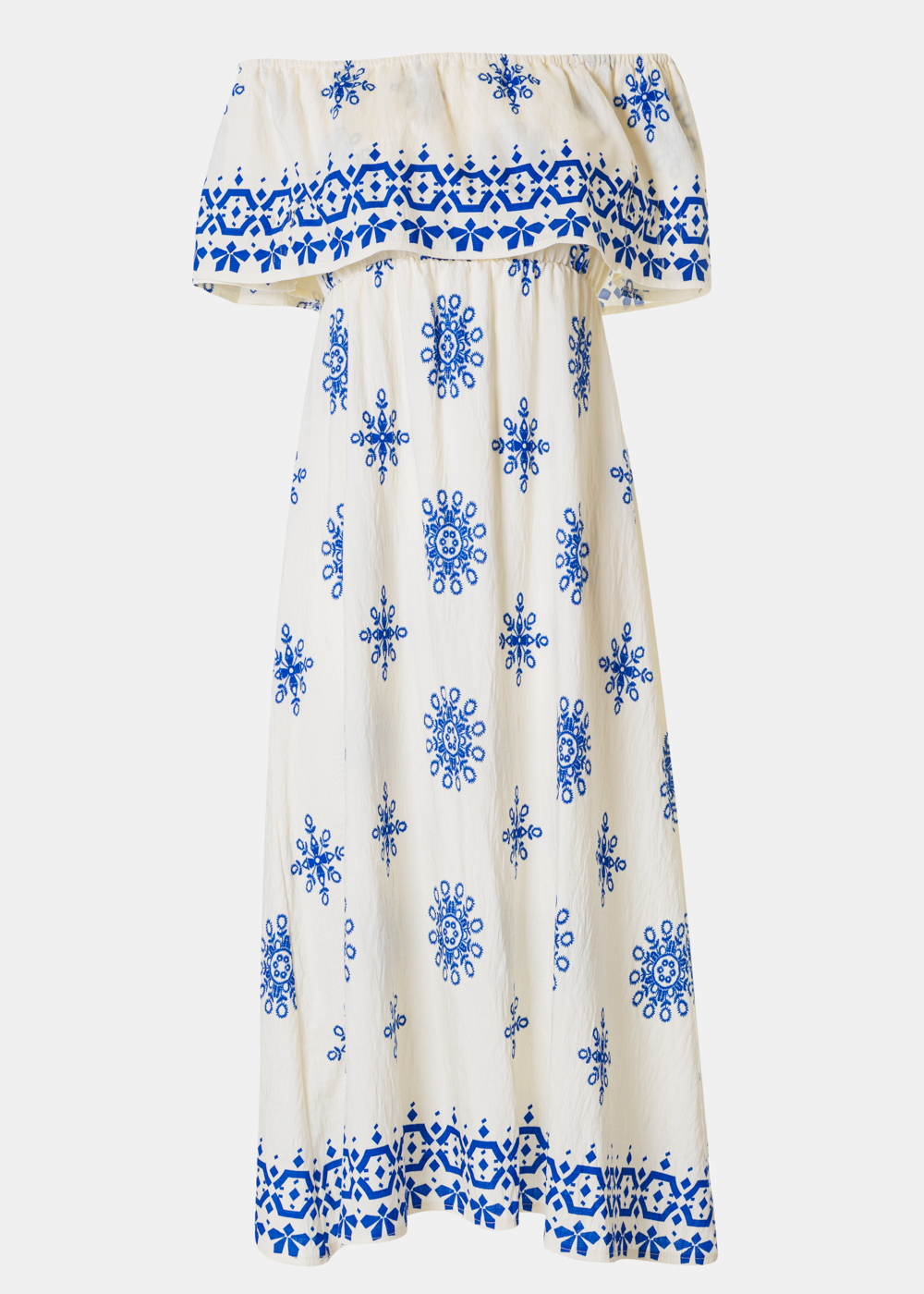 Ecru Maxi Dress w/ Blue Flowers