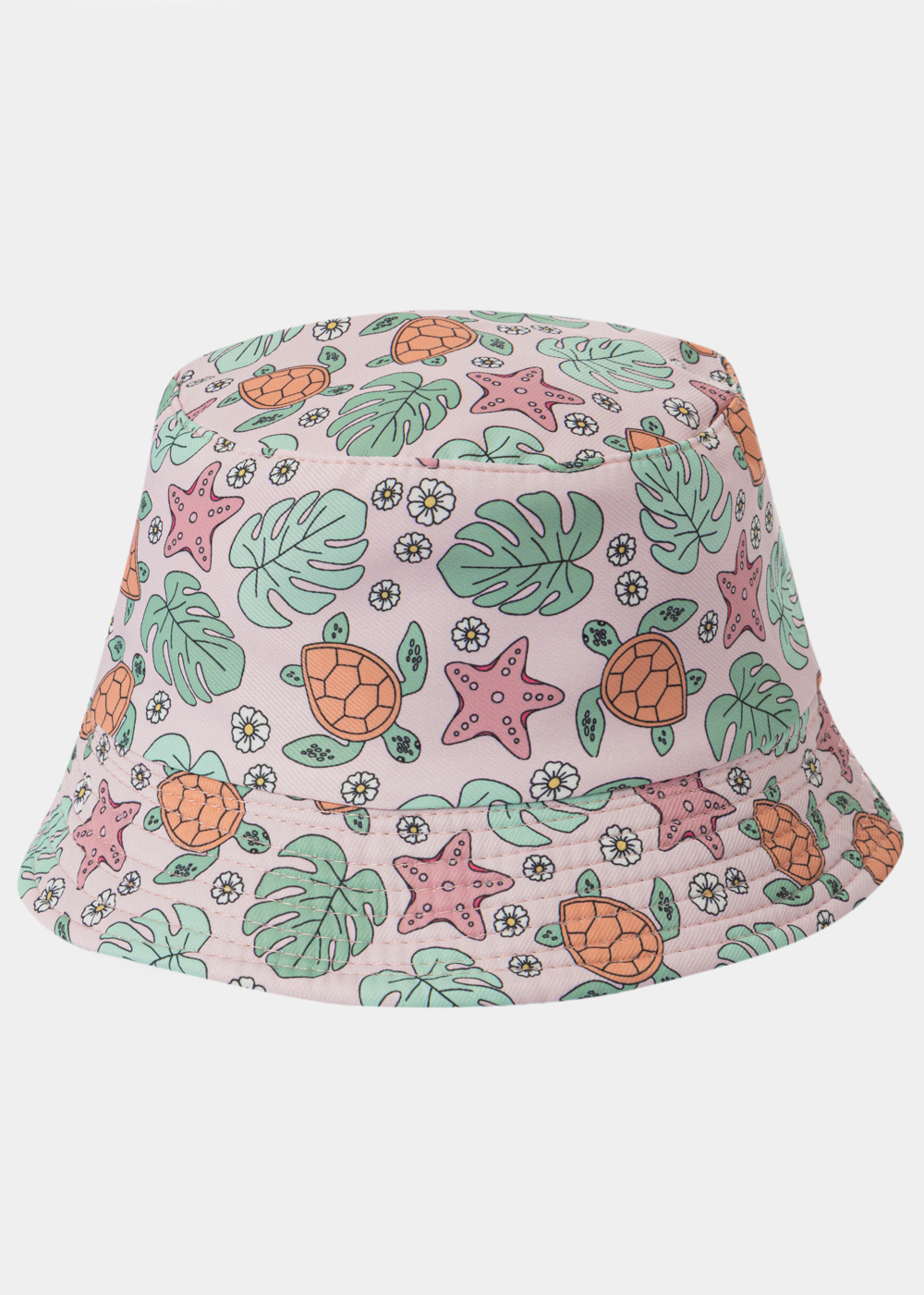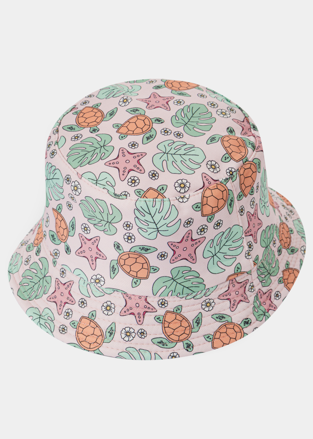 Kids Double-Faced Bucket Hat Turtles Pattern & Pink