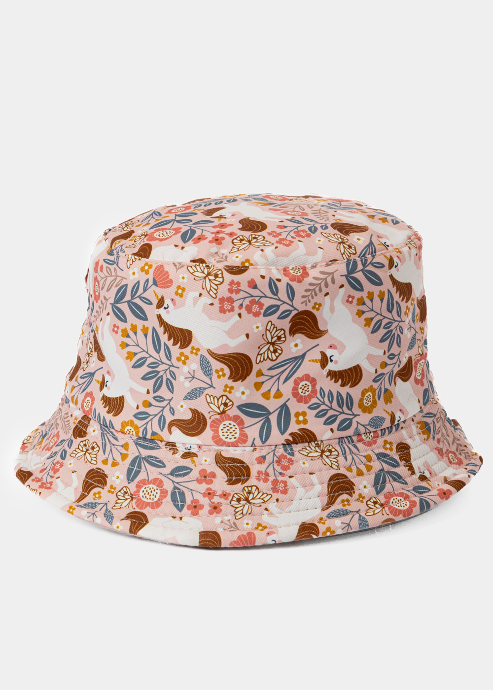 Kids Double-Faced Bucket Hat Unicorn Pattern & Light Pink