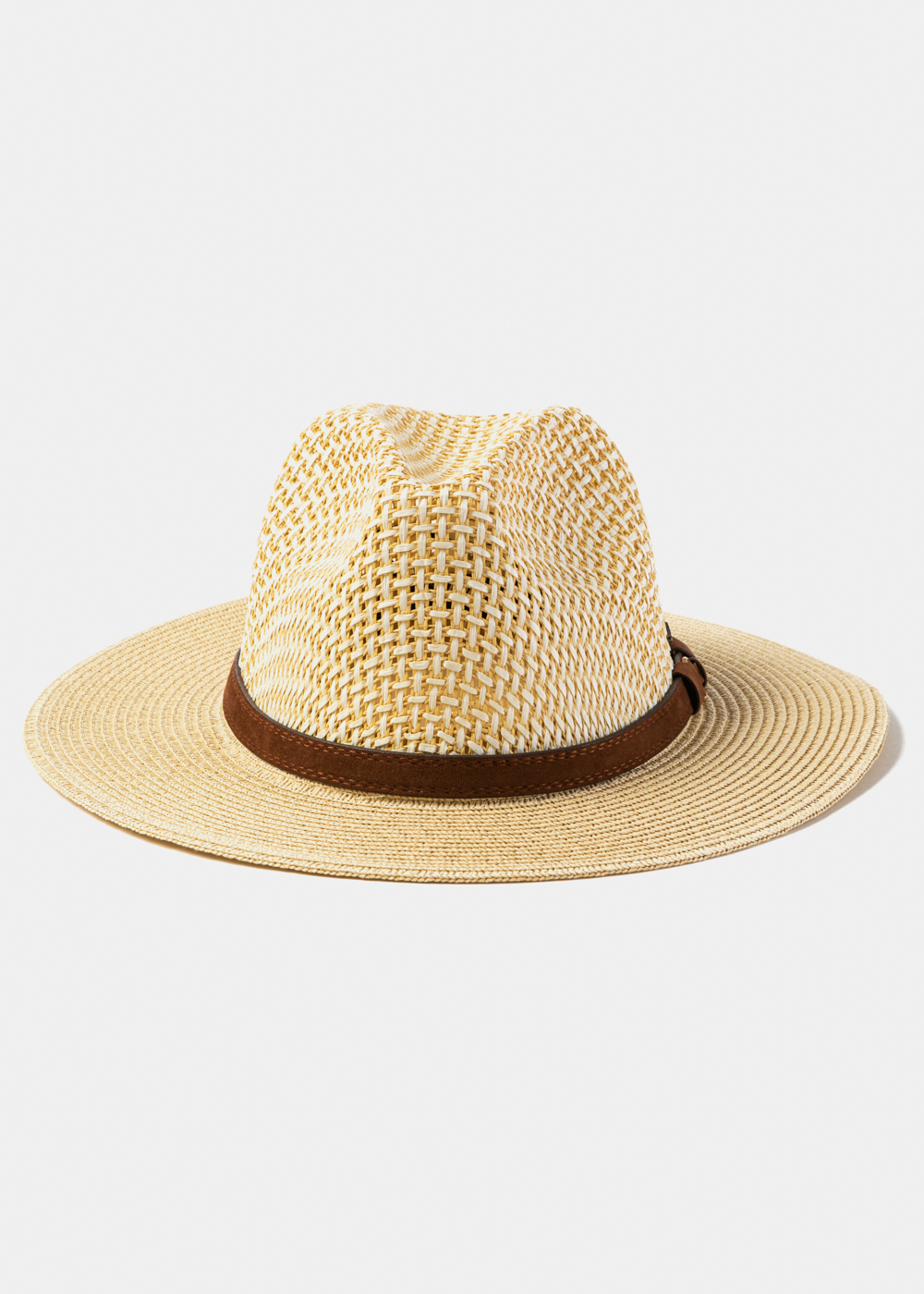 Mixed Beige Panama Style Hat w/ Leather Belt
