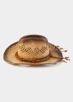 Natural Raffia Cowboy Style Hat w/ Orange Stones