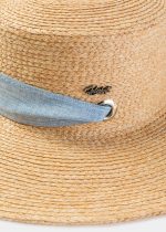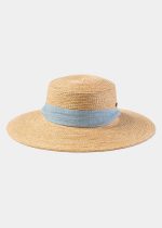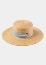 Natural Raffia Hat w/ Light Blue Neck Tie Ribbon