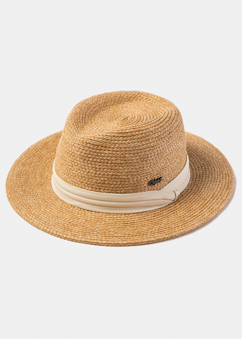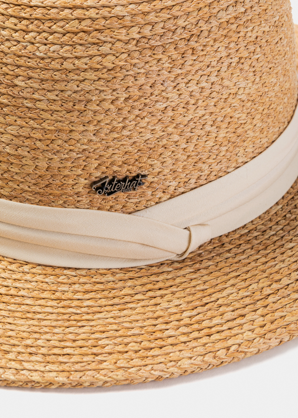 Natural Raffia Panama Style Hat w/ Beige Hatband
