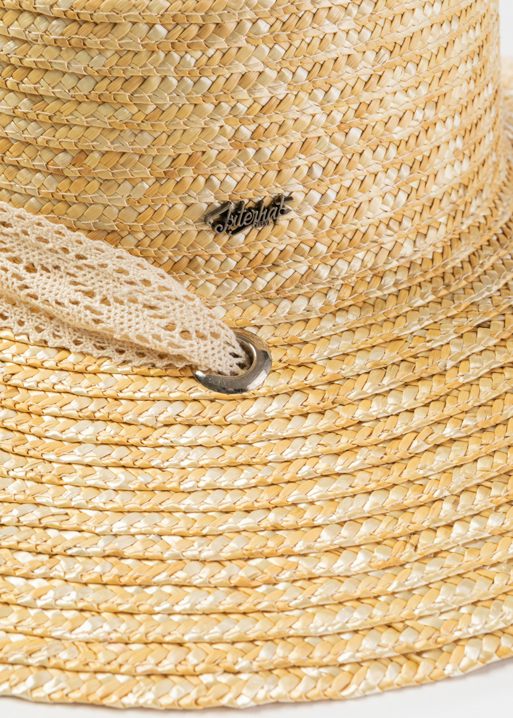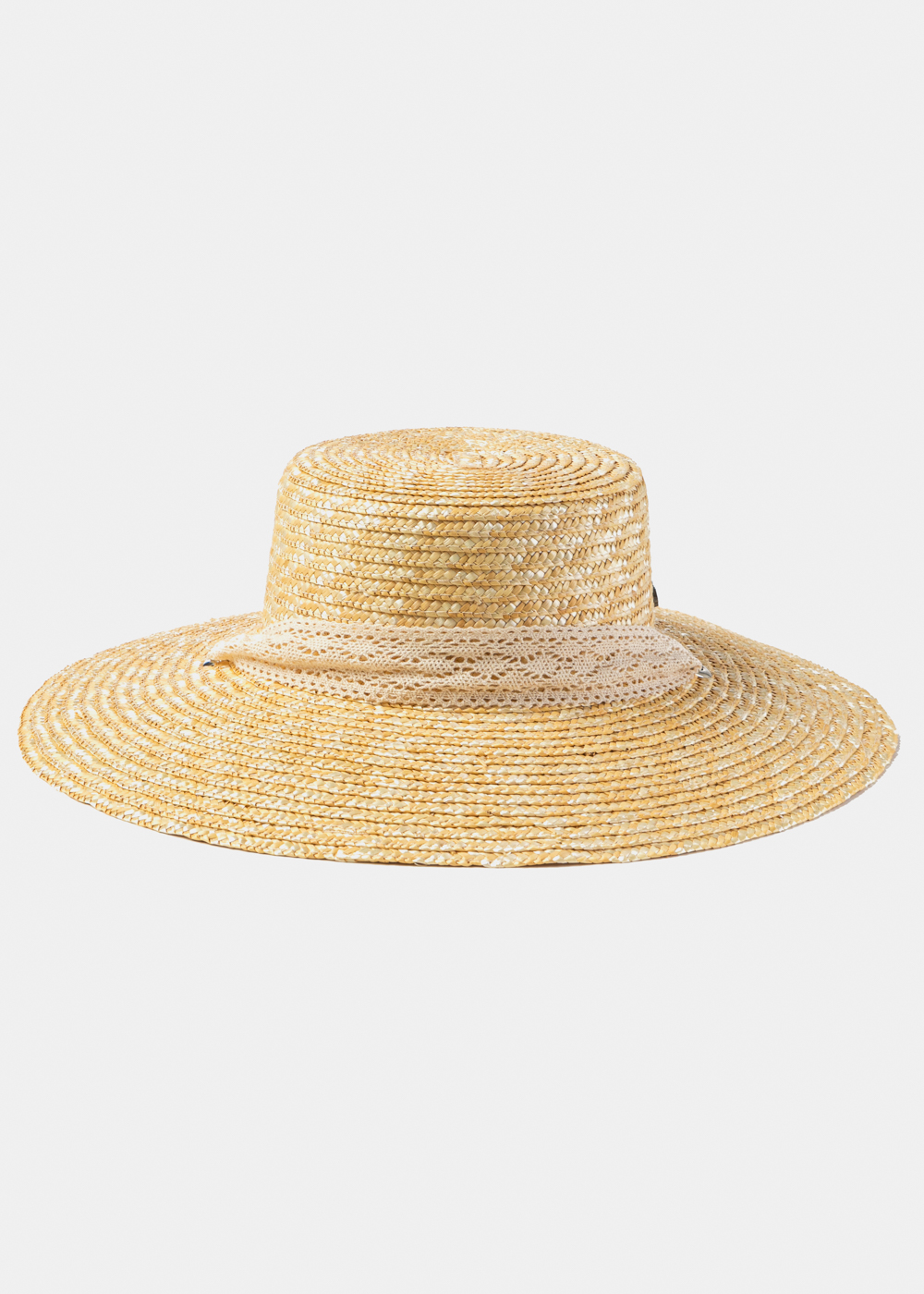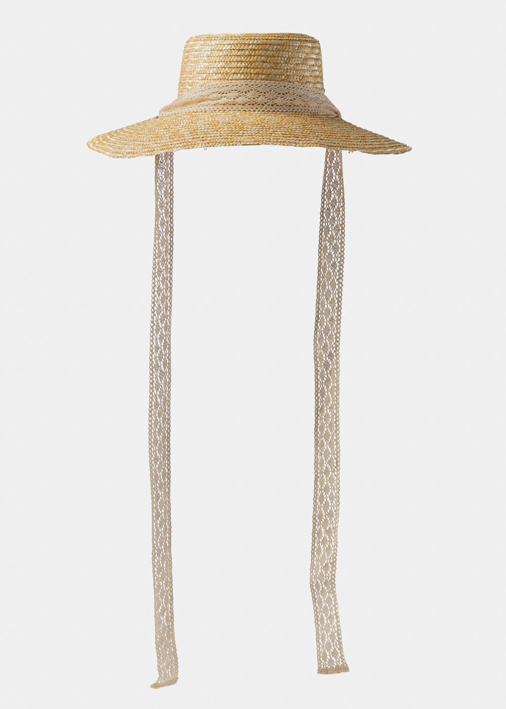 Natural Straw Hat w/ Laced Neck Tie Ribbon