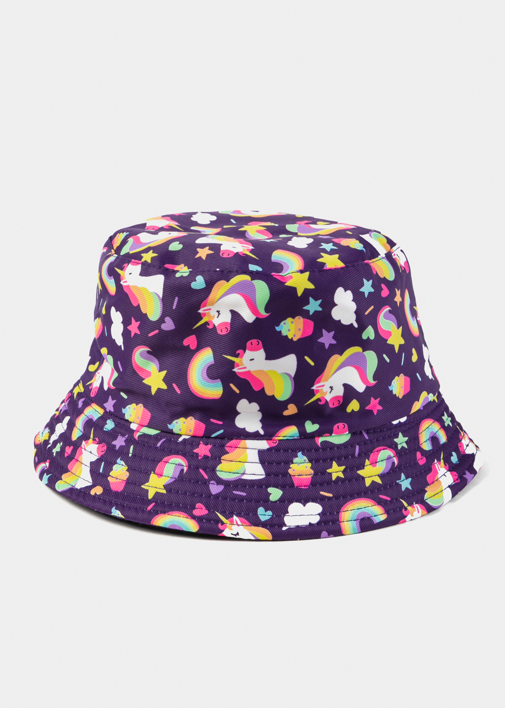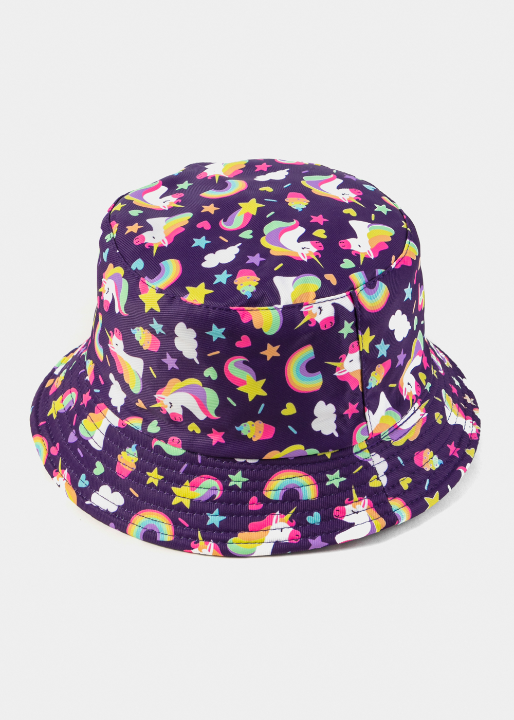 Navy Blue Double Face Kids Bucket Hat w/ Unicorns Pattern