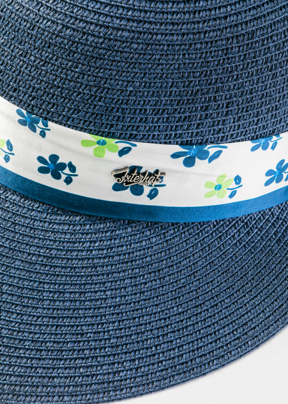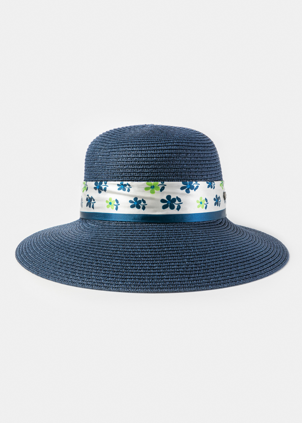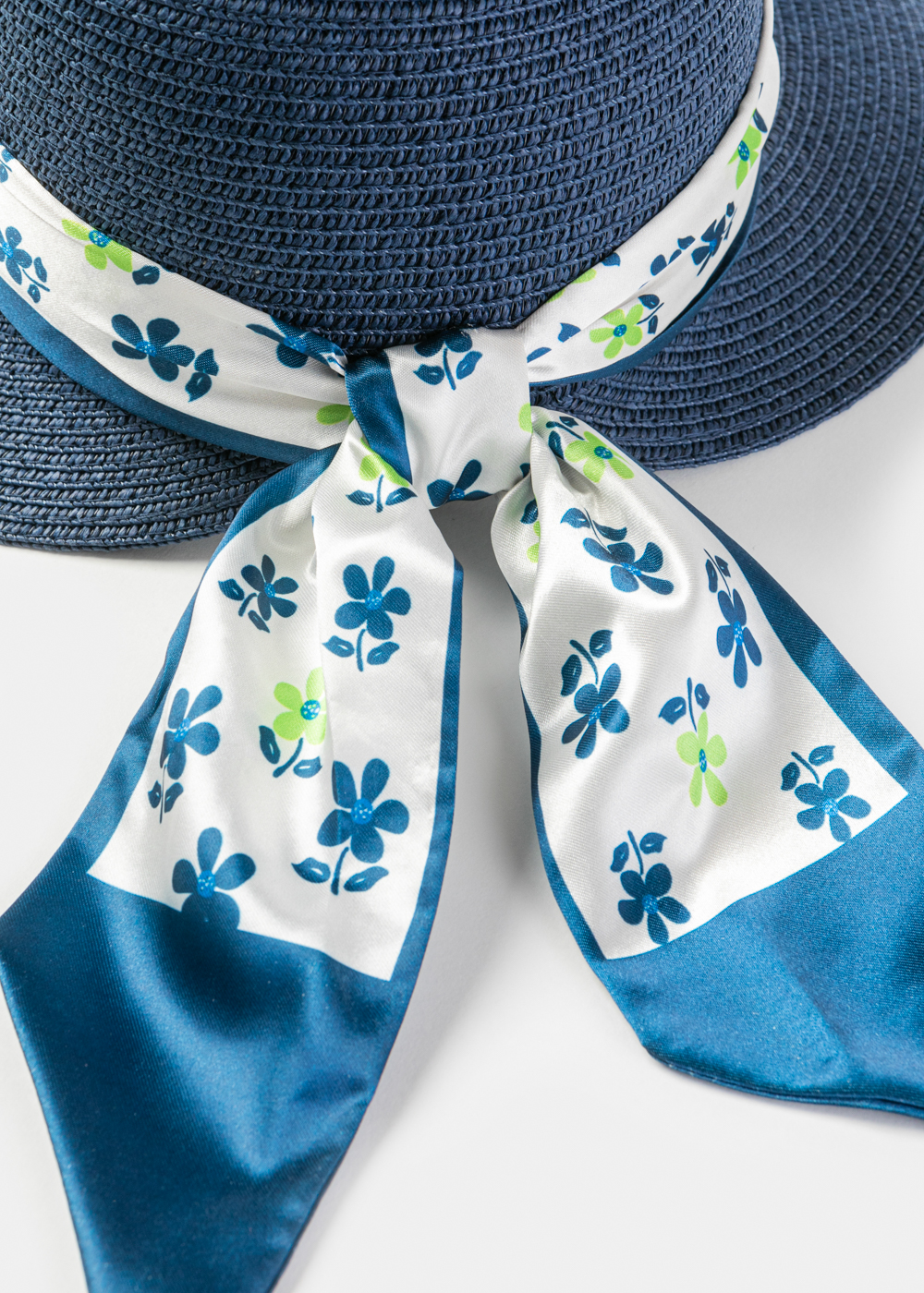 Navy Blue Hat w/ Patterned Satin Ribbon