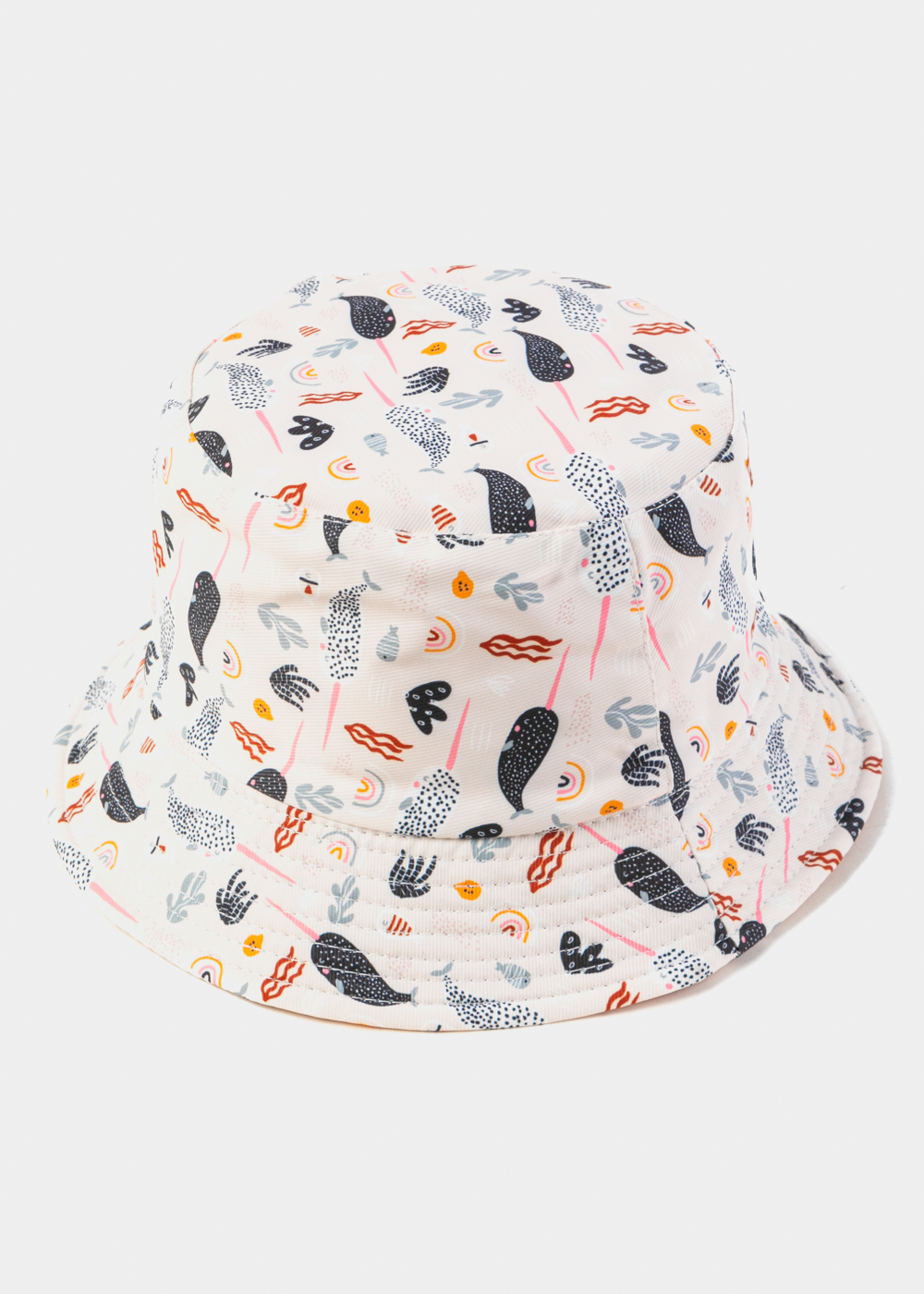 Pink Double Face Kids Bucket Hat w/ Swordfishes Pattern