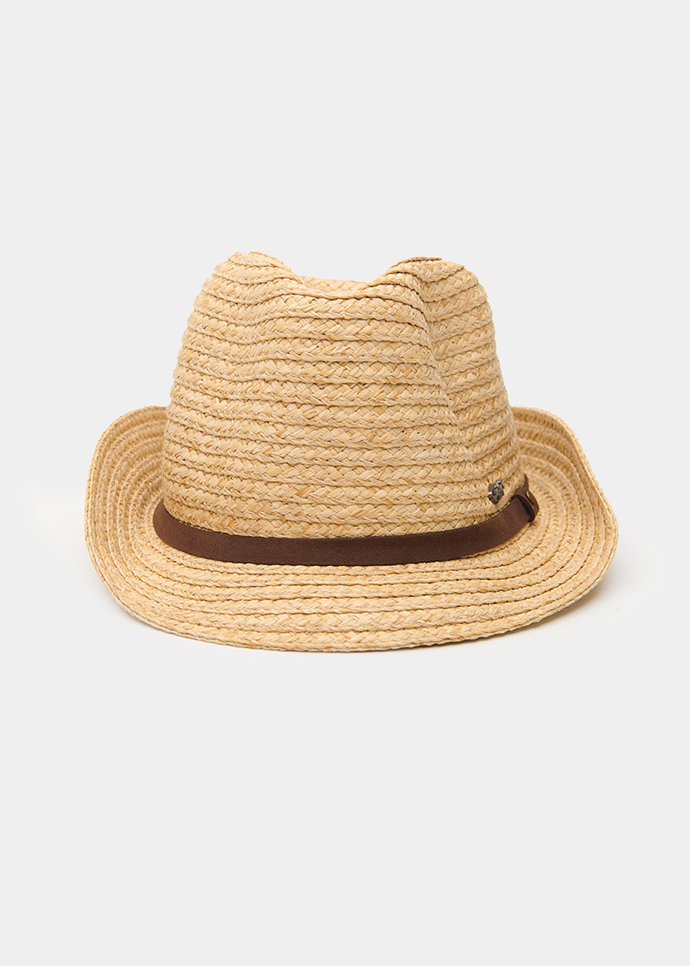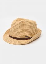Raffia Fedora with Brown Leather Strap