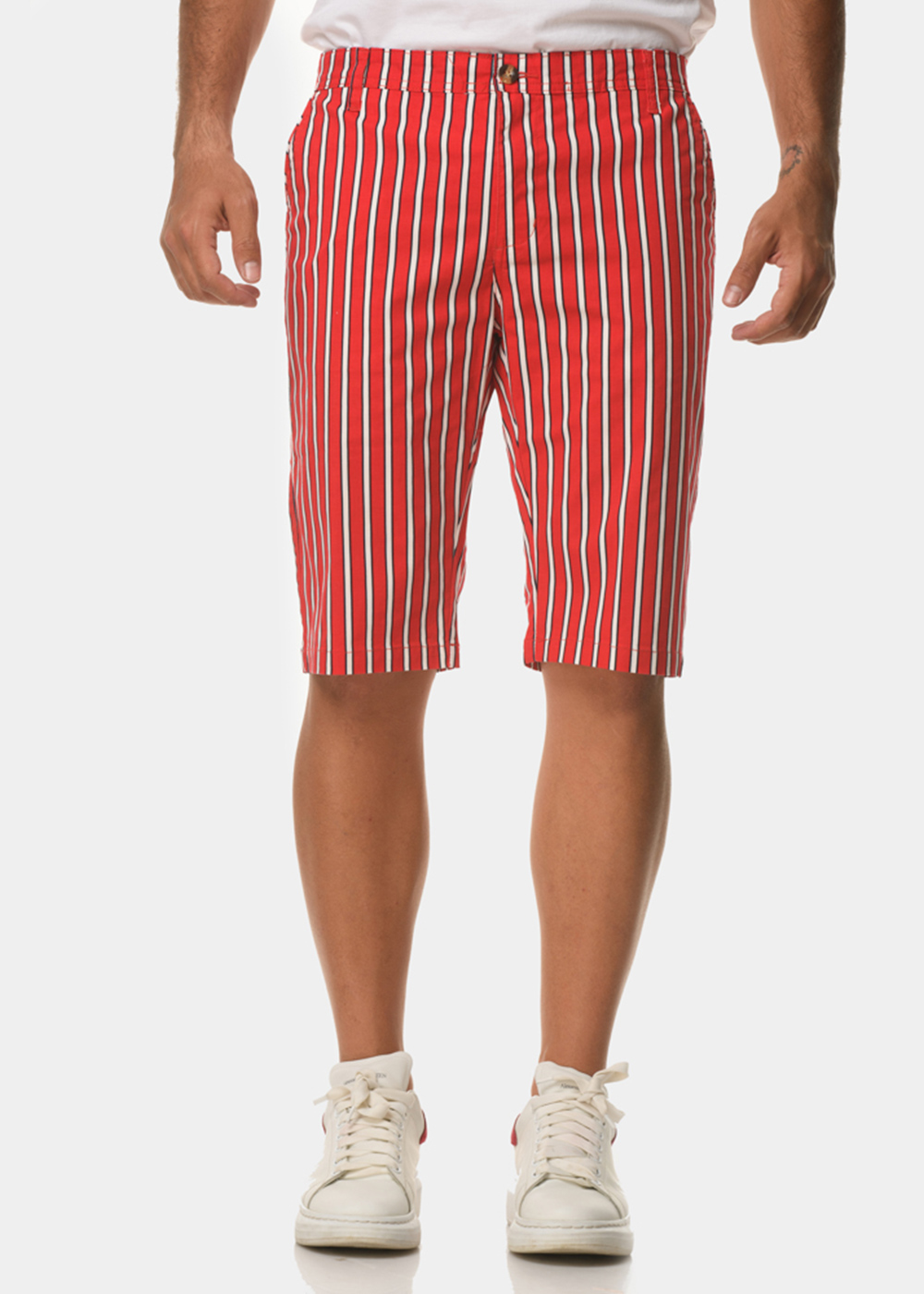 • Kόκκινο βαμβακερό παντελόνι με μπλε και λευκή ρίγα