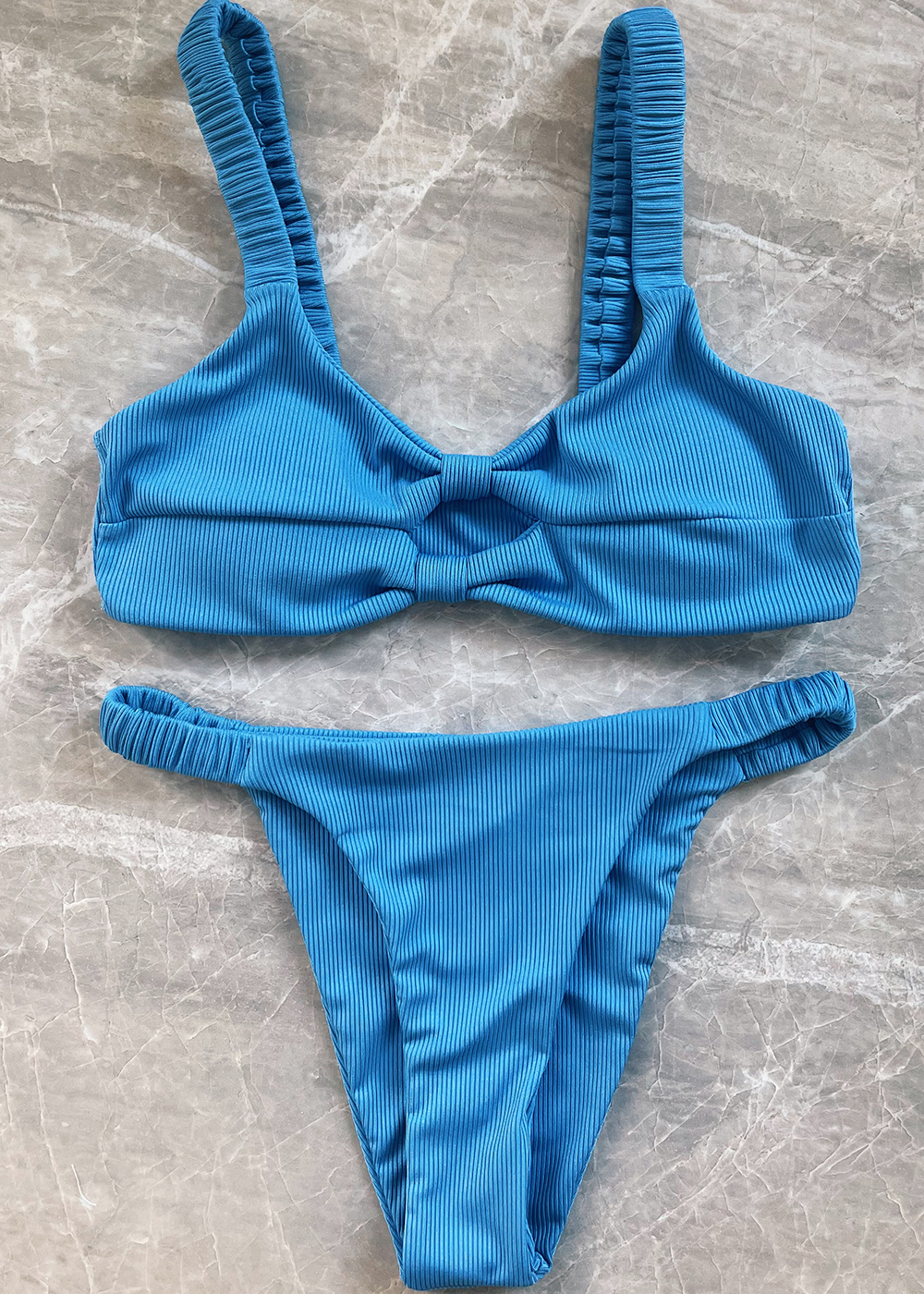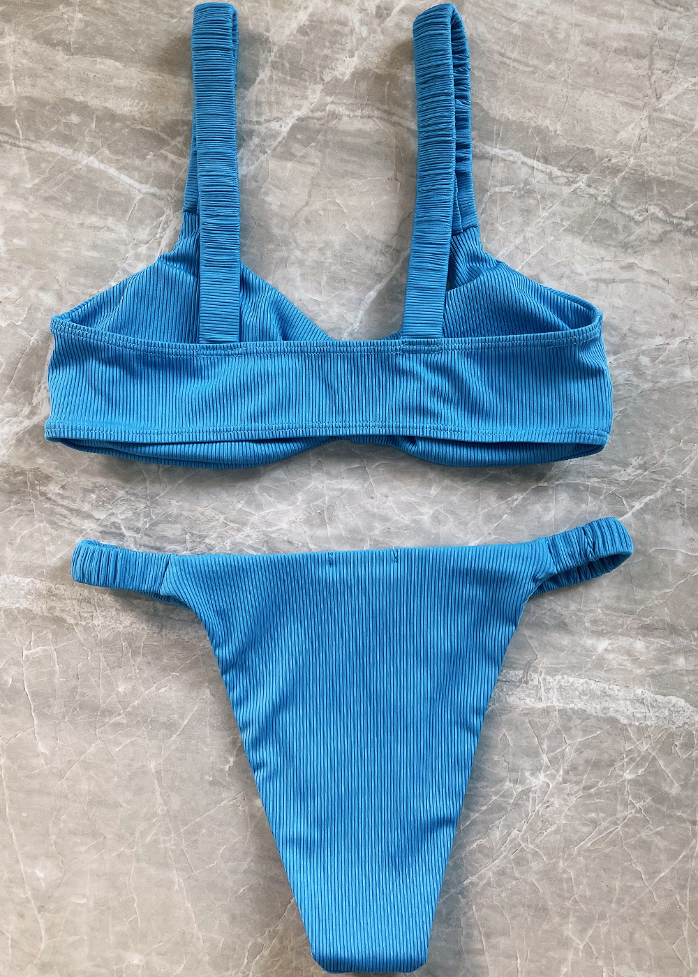 Ribbed Double Twist High Cut Bikini Swimwear – Blue