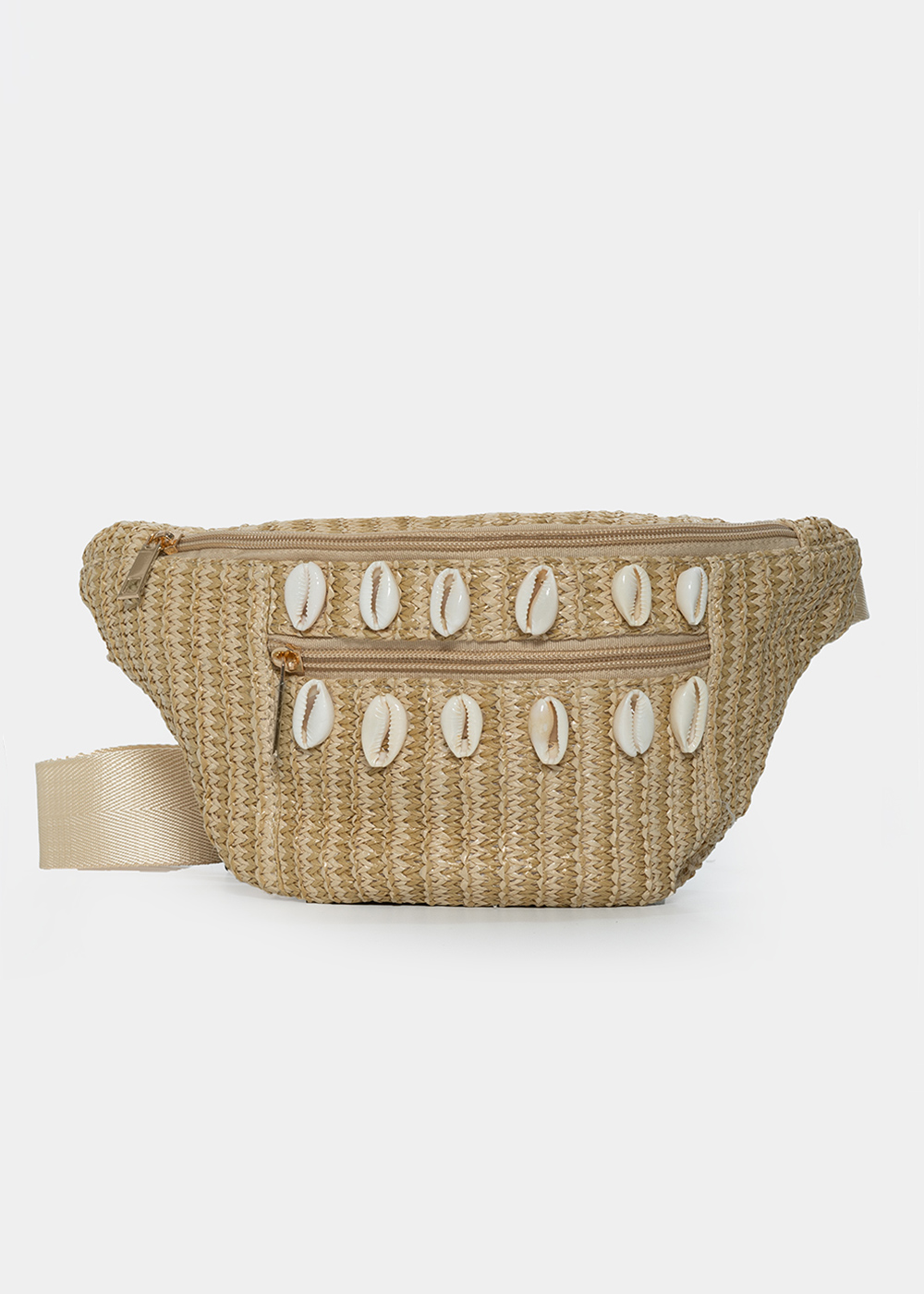 - Μπεζ ψάθινο τσαντάκι μέσης