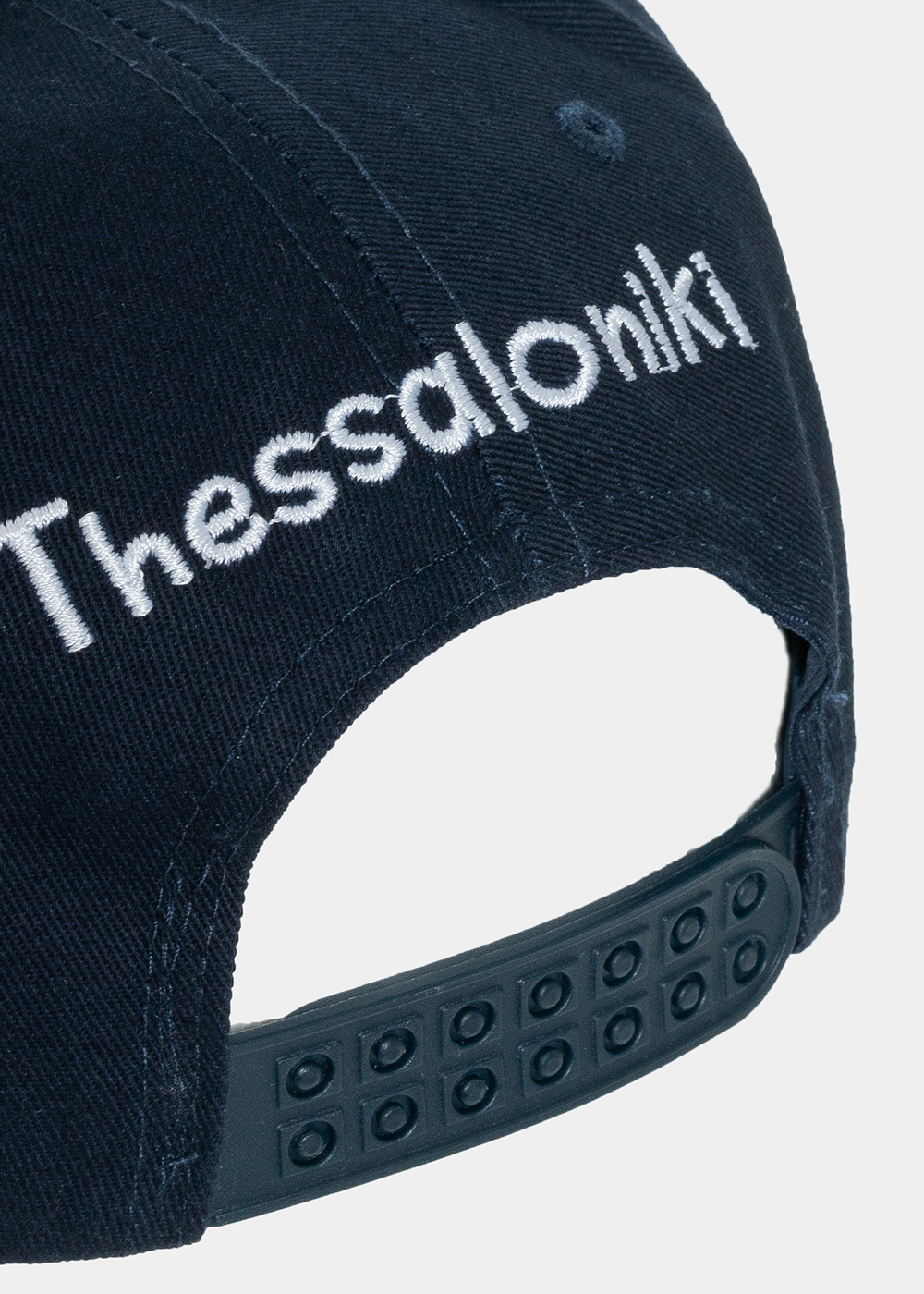 - Λογότυπο της Θεσσαλονίκης κεντημένο στο πίσω μέρος σε λευκό