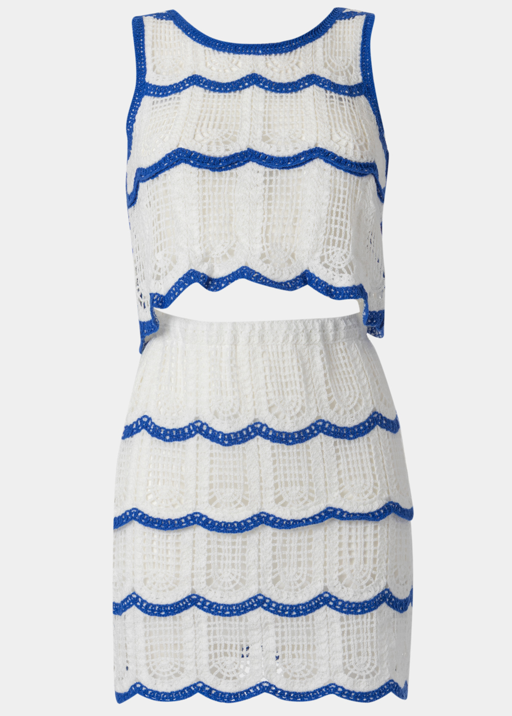 White & Blue Knitted Top & Skirt Set