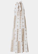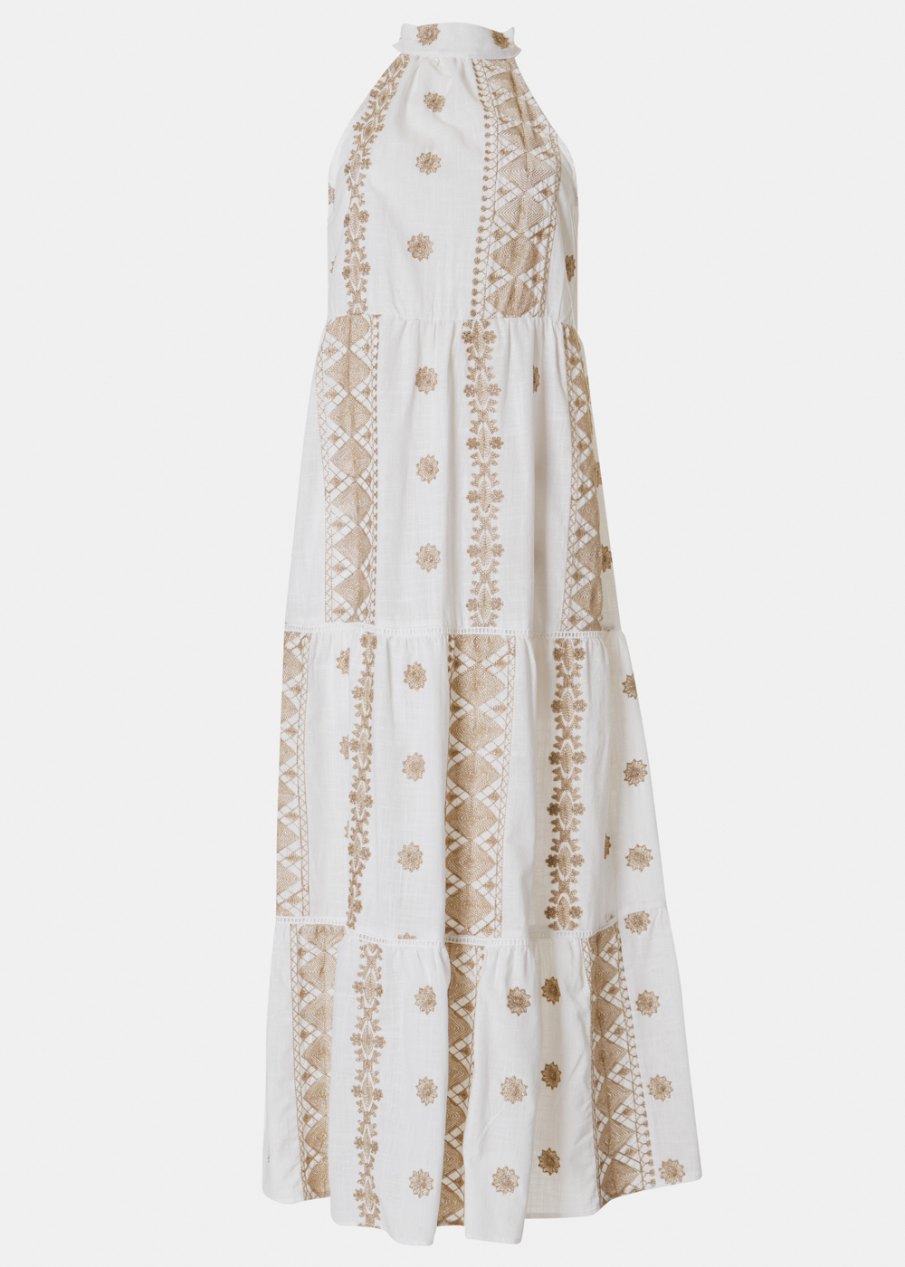 White & Gold Halter Neck Maxi Dress