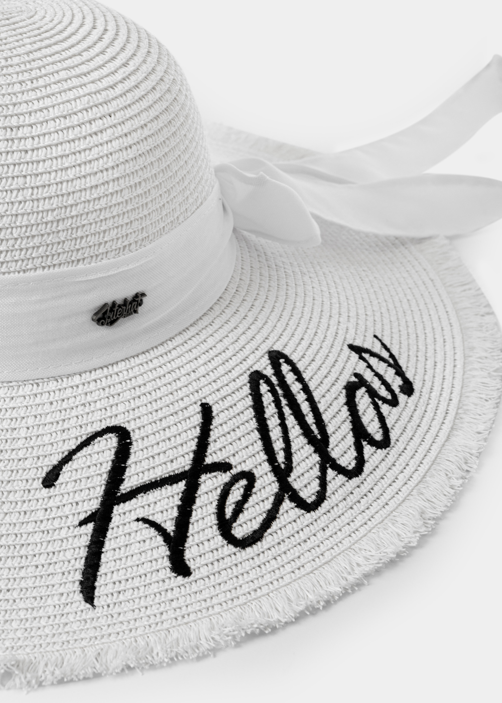 White “Hellas” Straw Hat w/ White Ribbon
