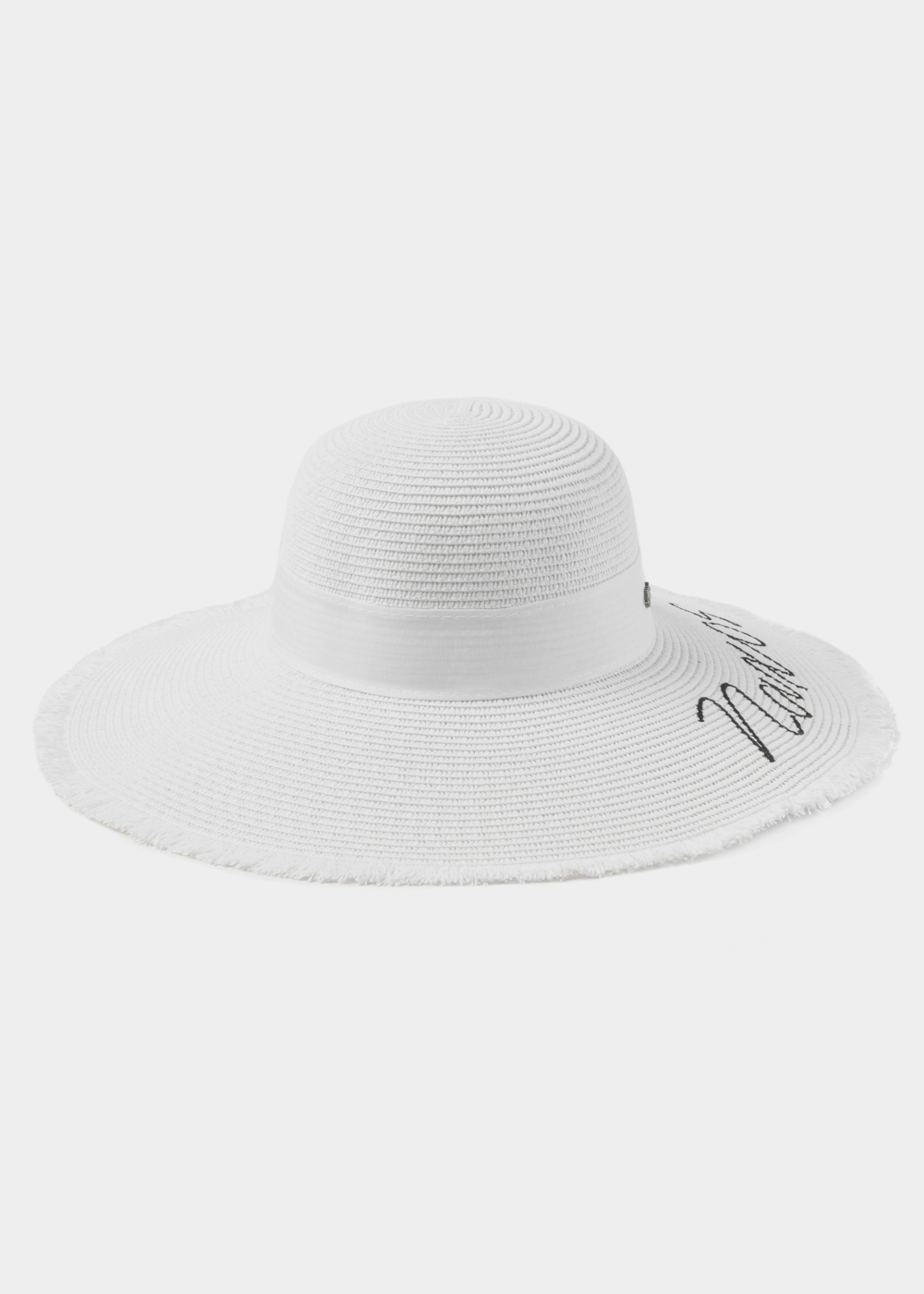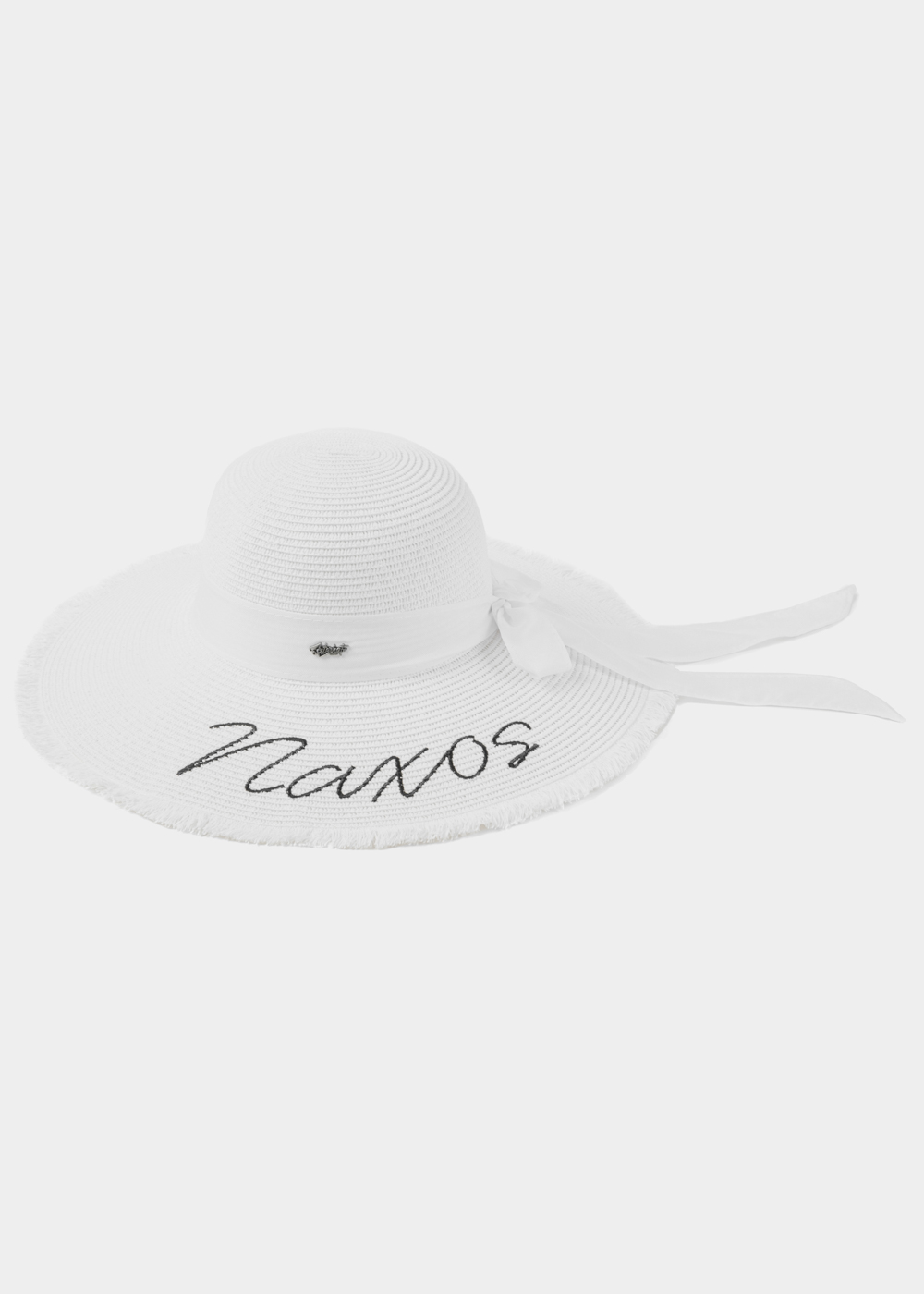 White “Naxos” Straw Hat w/ White Ribbon
