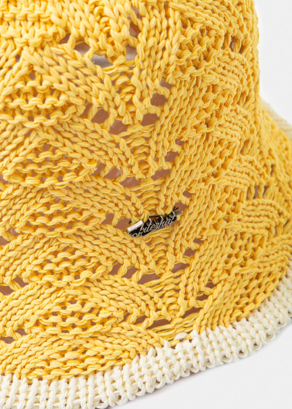 Yellow Knitted Bucket Style Hat w/ Ecru Outline